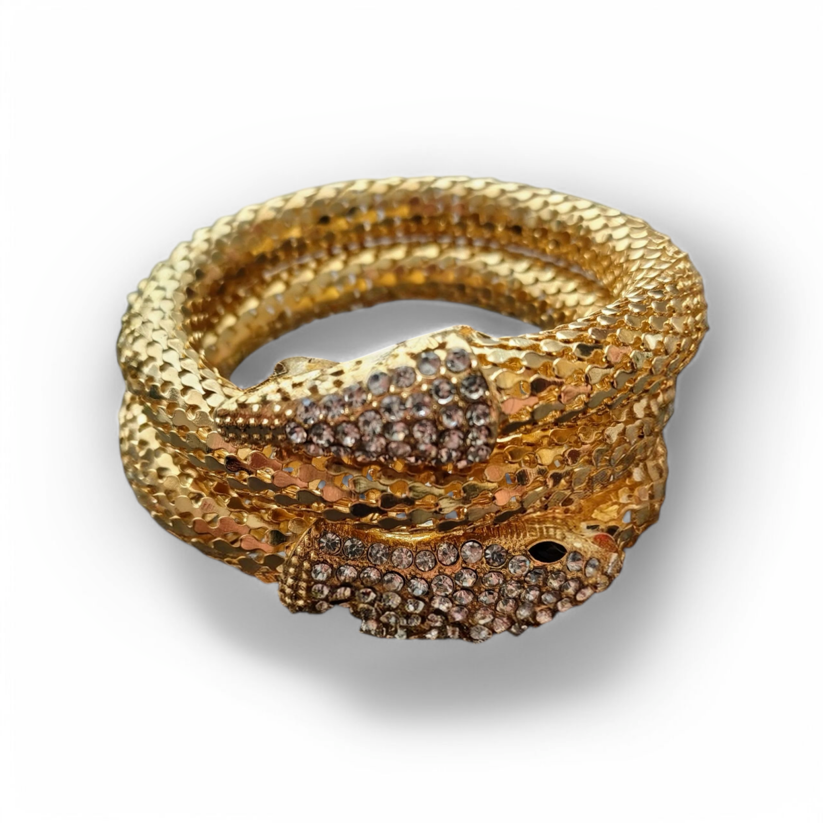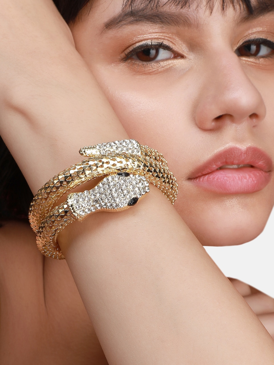Bratara Aurie Accesorizat cu Strasuri – Gold Snake este un accesoriu elegant, realizat din oțel inoxidabil aurit, cu un design deschis și modern. Perfectă pentru a adăuga o notă sofisticată oricărei ținute, de zi sau de seară. Datorită materialului rezistent, își păstrează strălucirea timp îndelungat. Se asortează ușor și este ideală pentru orice ocazie.