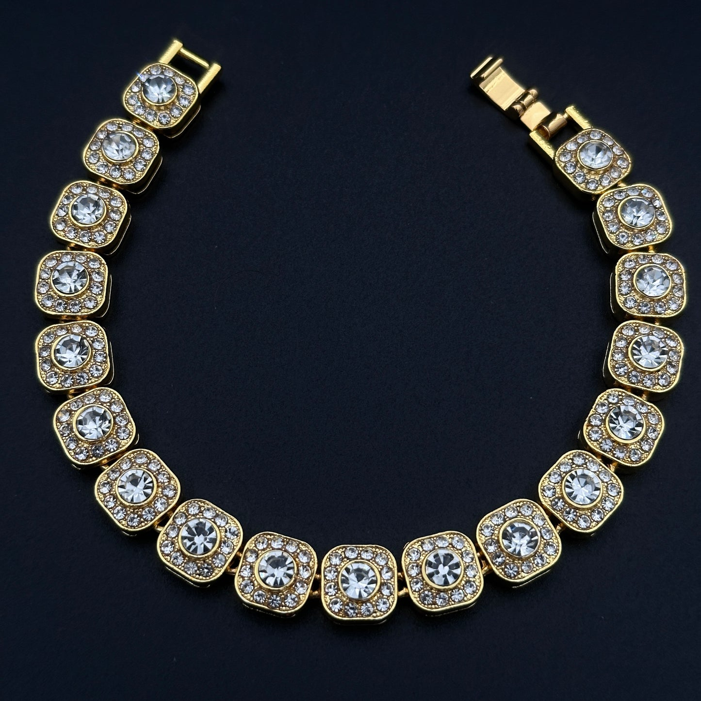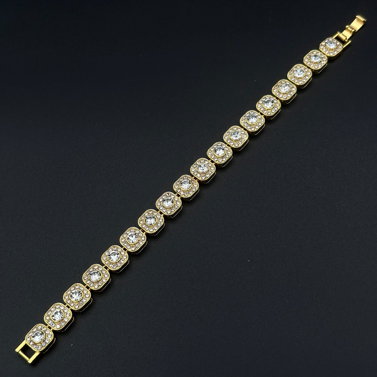 Bratara Tennis, Diamond, inchidere cu siguranta, din otel inoxidabil placat cu aur, Unisex - Produs UNISEX