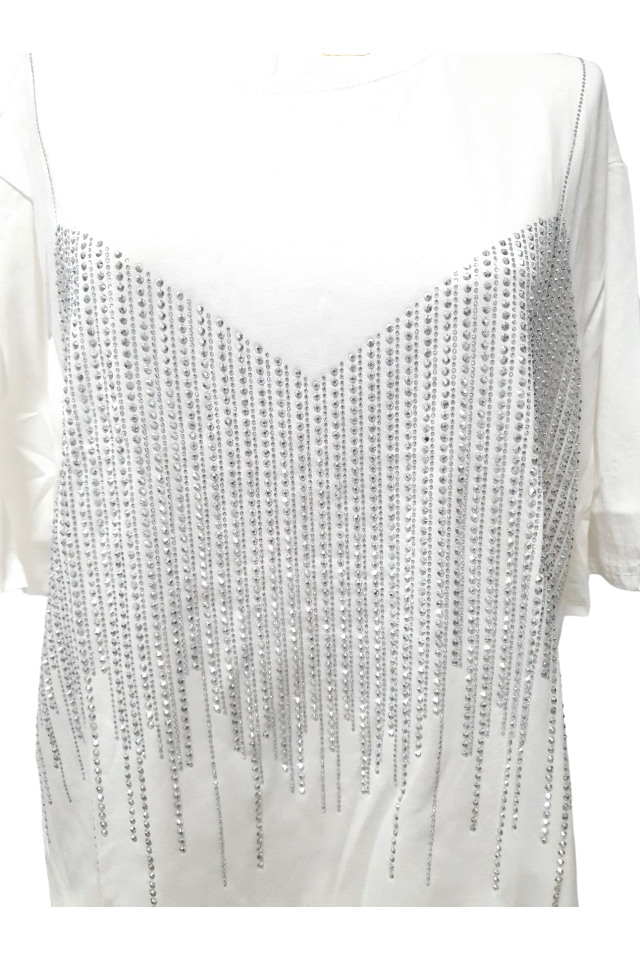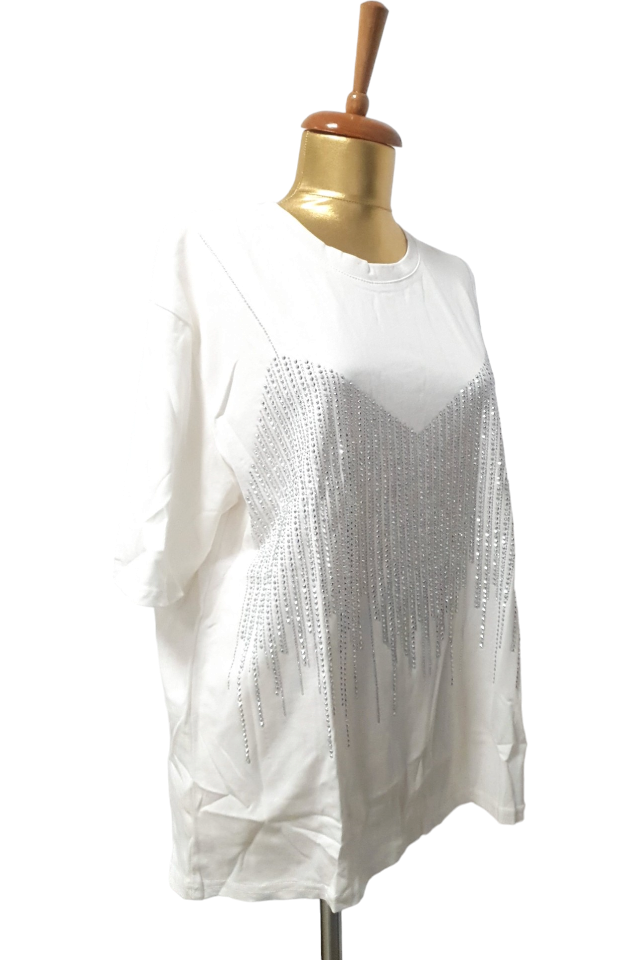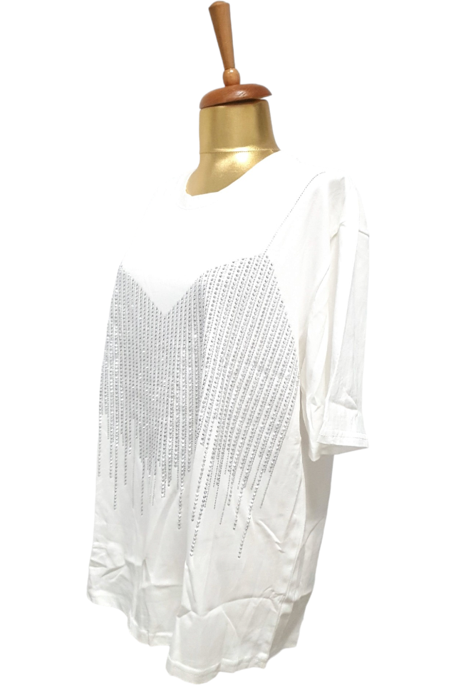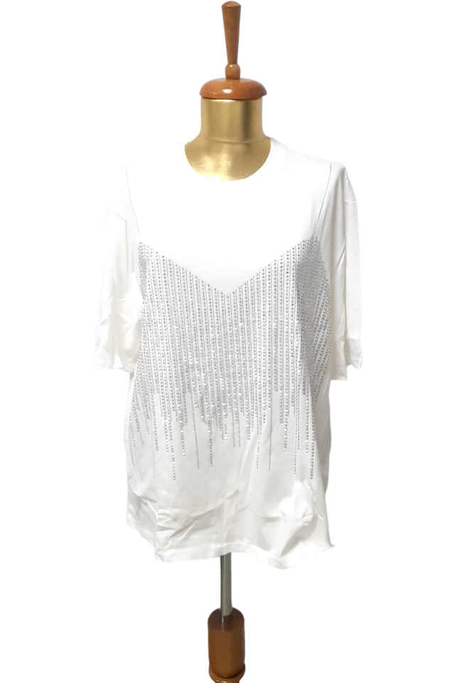 Bluza dama cristale New Zealand. Cu maneca scurta si croiala lejera, bluza este potrivita pentru tinutele zilnice - alb