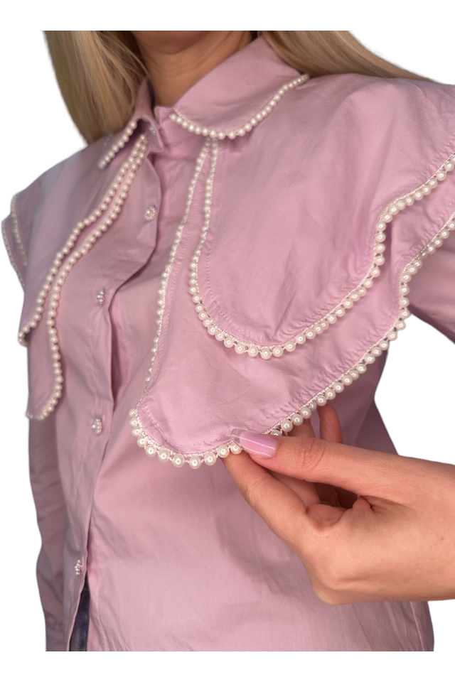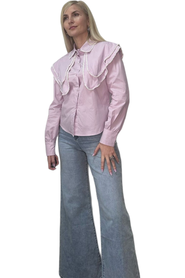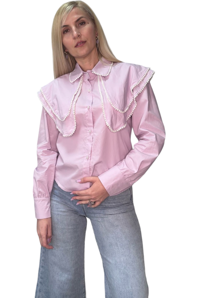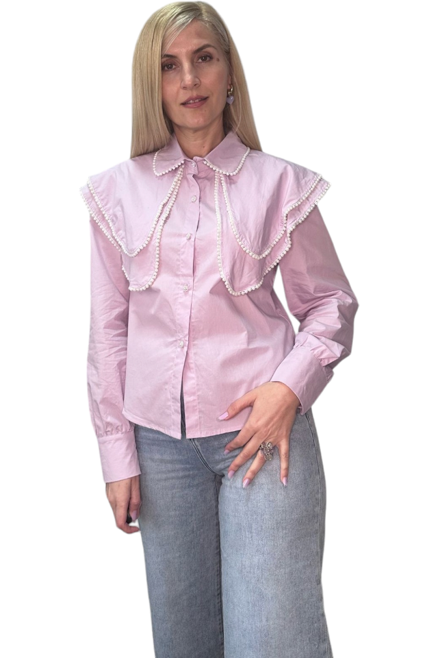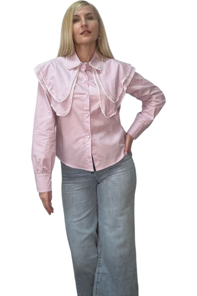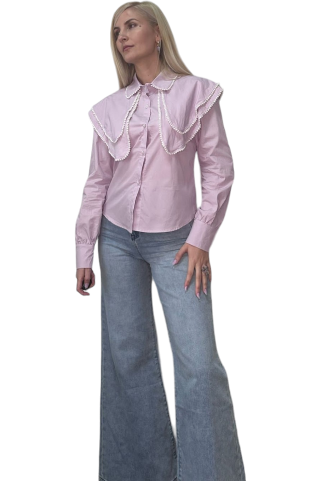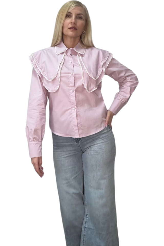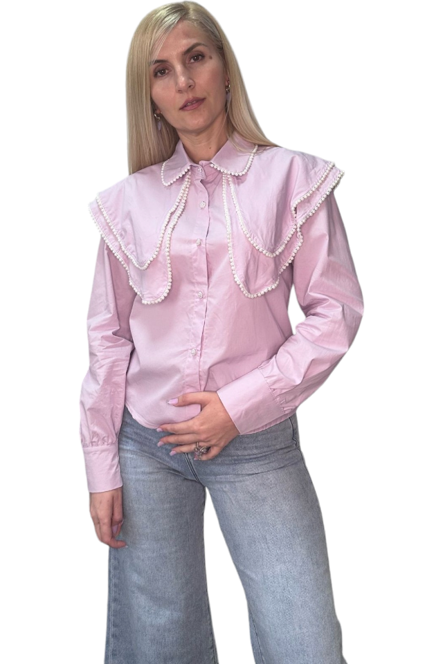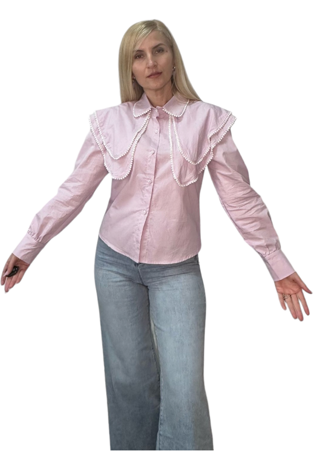 Bluza dama cu volane decorative - ZOE. Cu maneca lunga si guler sofisticat, bluza este potrivita pentru tinutele zilnice