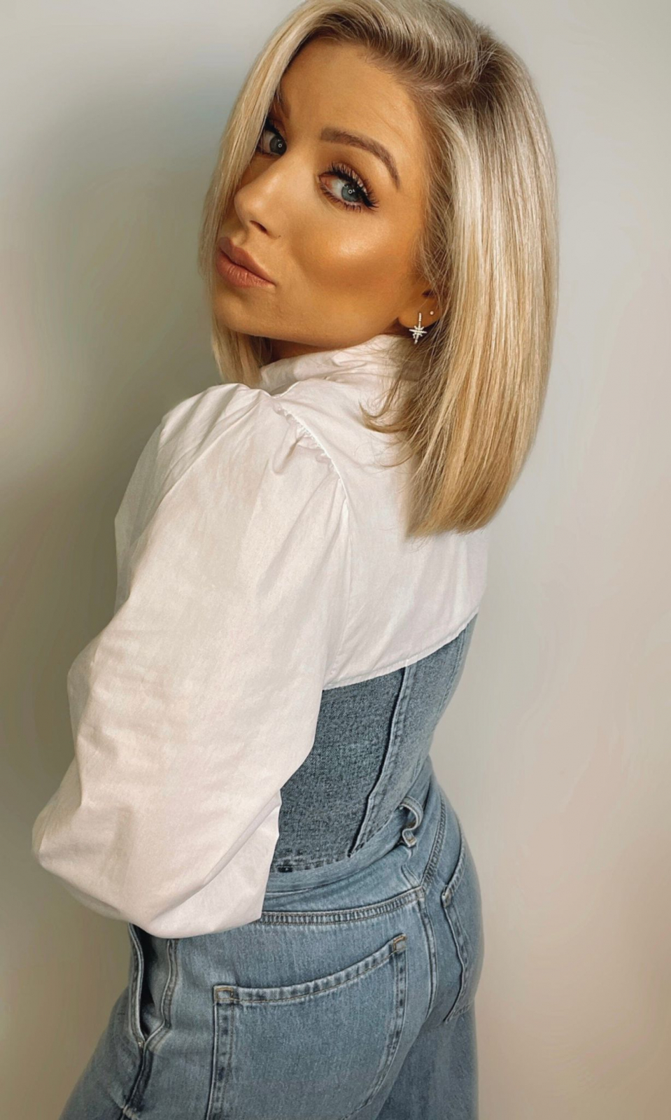 Camasa dama chic, cu aplicatii denim și închidere cu nasturi, perfectă pentru primăvară-vară. Fii fermecătoare! ✨