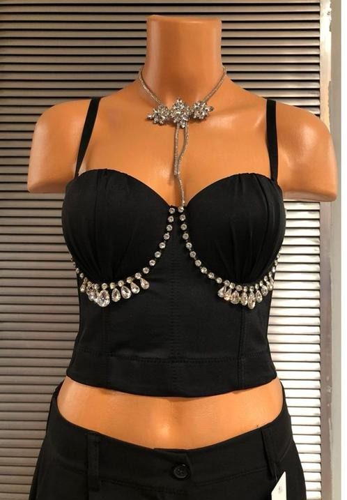 Corset stralucitor cu cristale si push-up, bretele reglabile si inchidere ajustabila. Perfect pentru tinute elegante, disponibil pe marimi S, M, L.