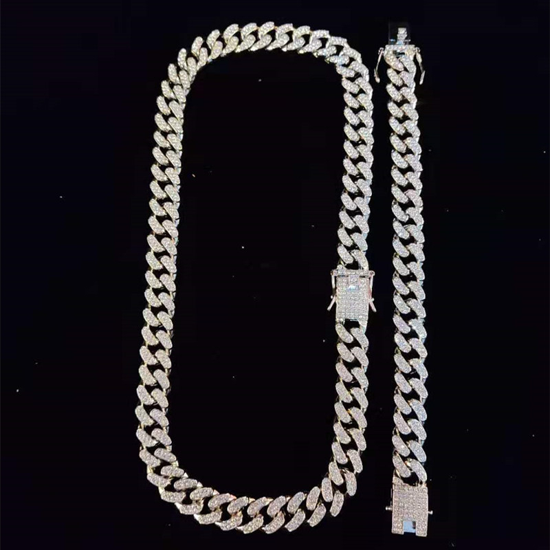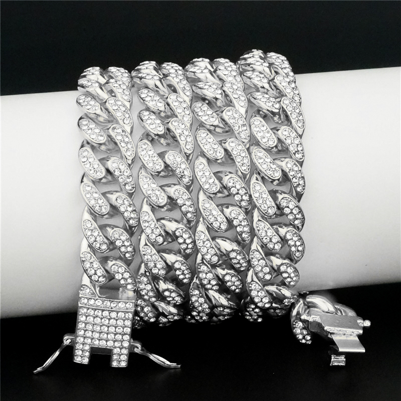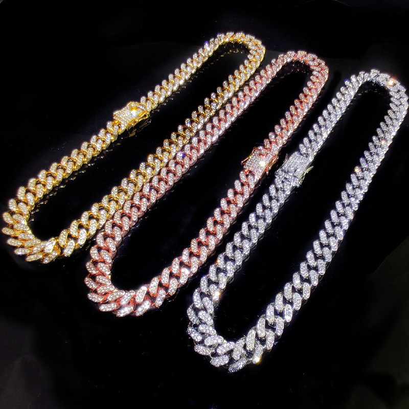 Colier Cuban, Cristal Zirconiu ICED OUT MIAMI lant zale 13mm, inchidere cu siguranta, din otel inoxidabil, Hip-Hop Style, cadou, poate fi combinat. Fotografii reale. Hipoalergenic