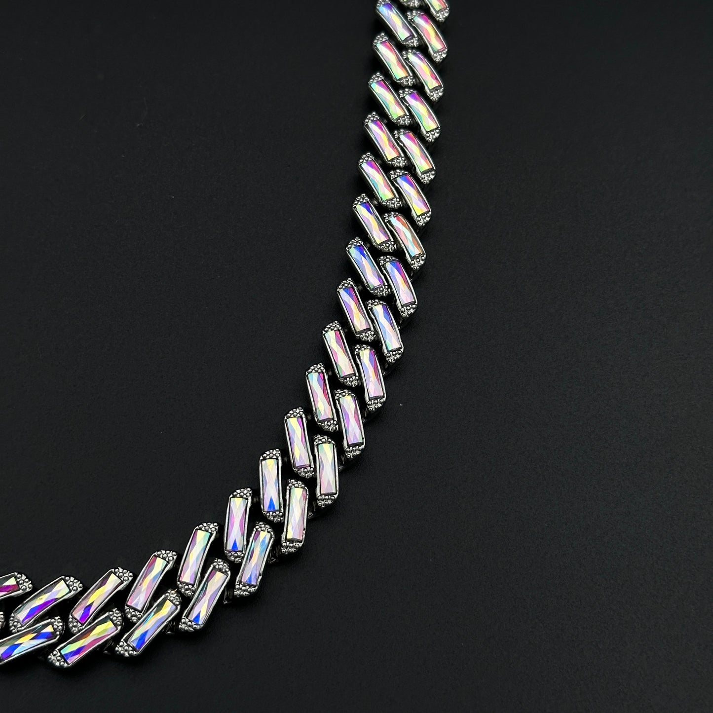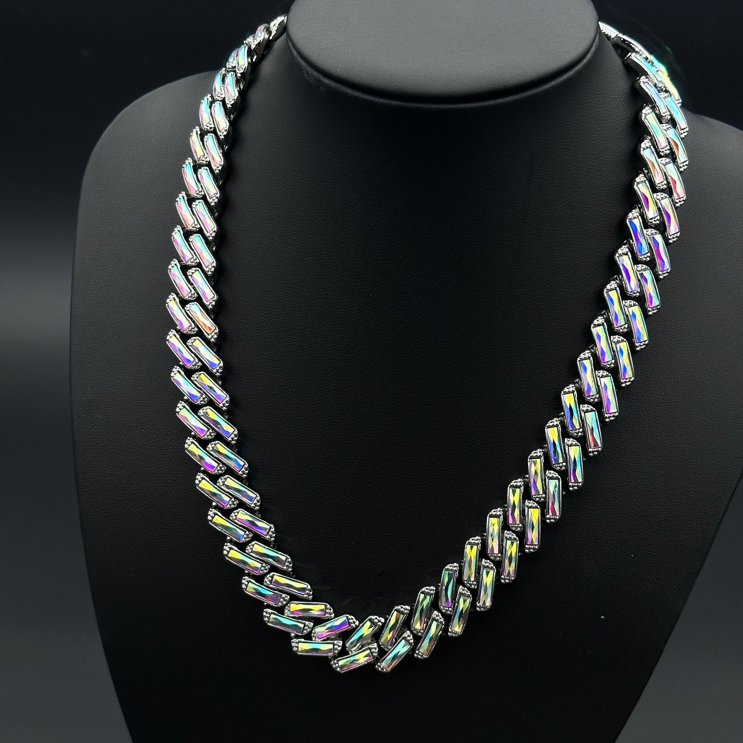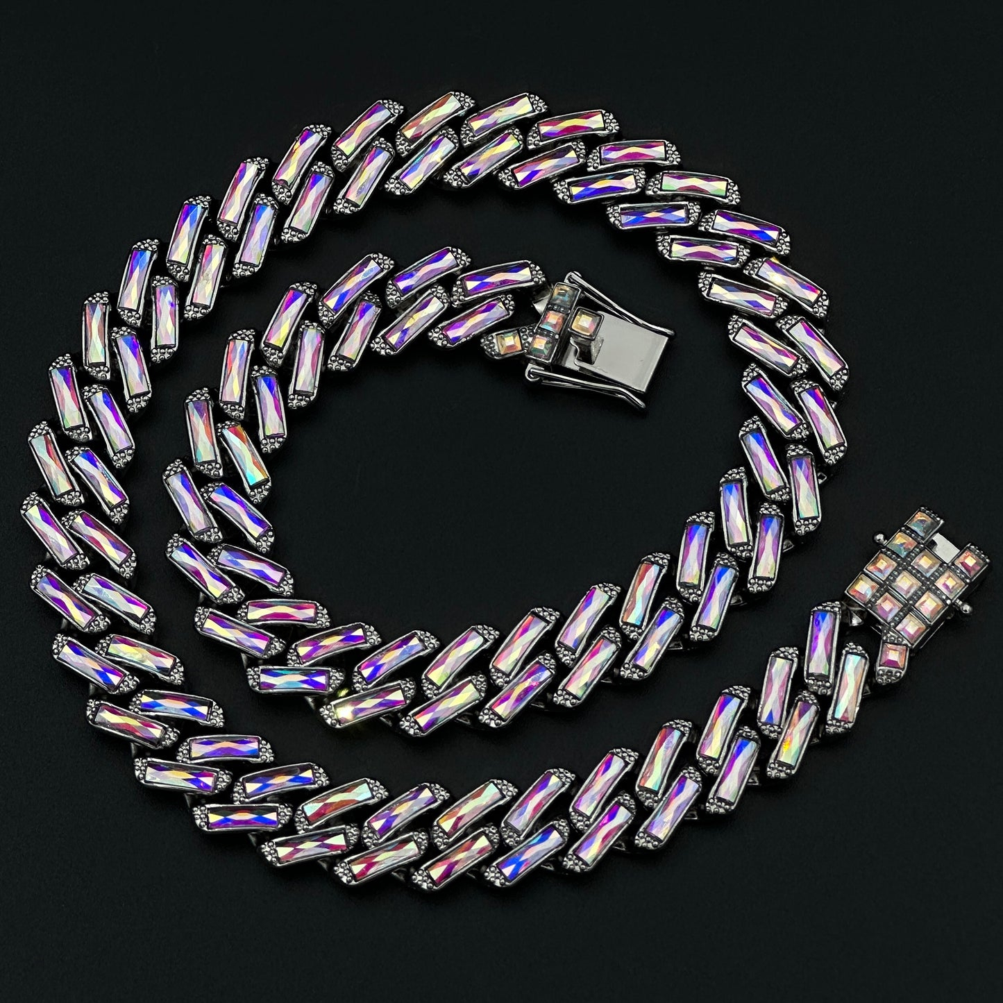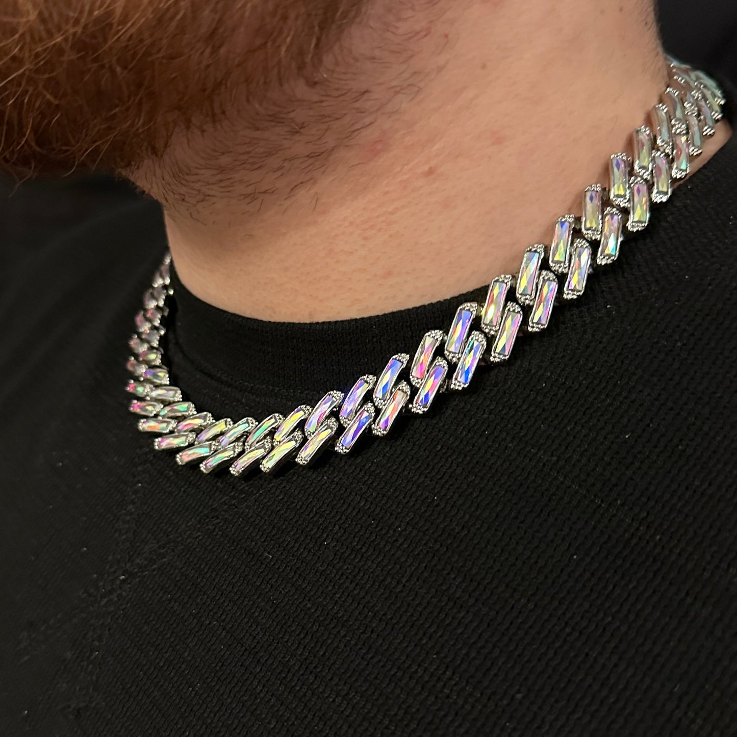Pentru un efect wow, colierul poate fi combinat cu alte coliere cuban de alte dimensiuni sau cu lant cu pandantiv (vezi pozele) din magazinul nostru. Adopta un stil urban Miami - Iced Out Hip-Hop, ce iese in evidenta la orice tinuta.