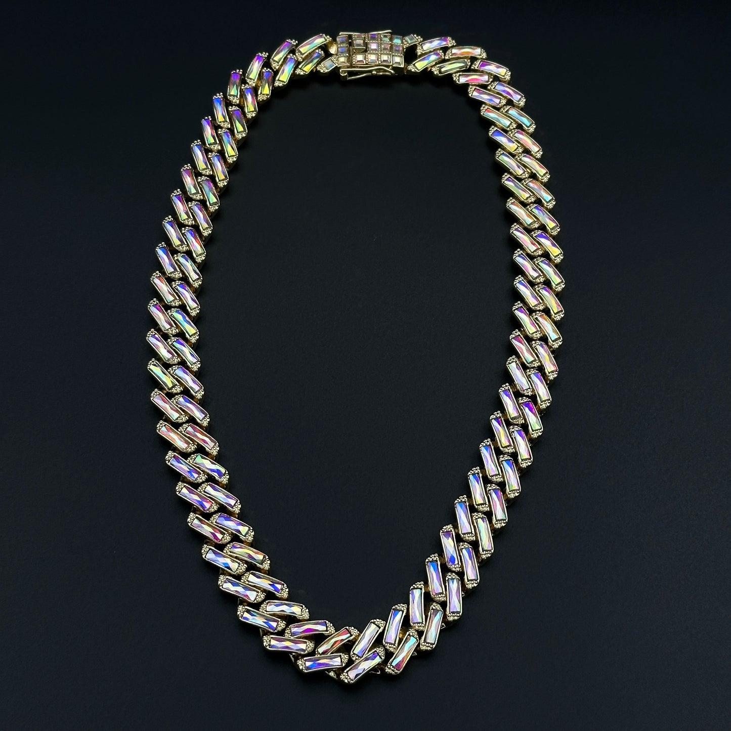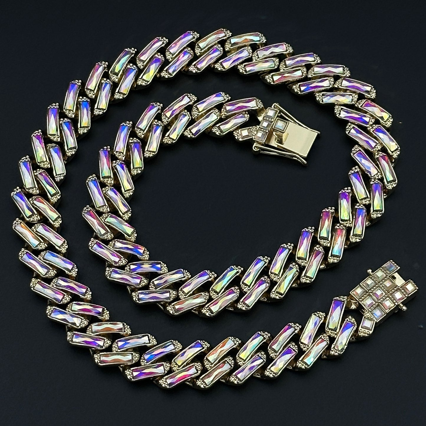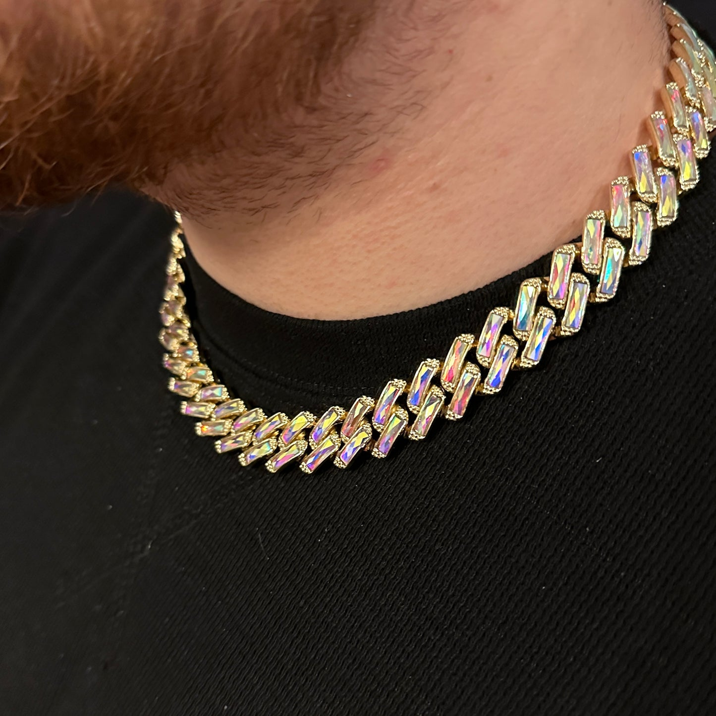 Pentru un efect wow, colierul poate fi combinat cu alte coliere cuban de alte dimensiuni sau cu lant cu pandantiv (vezi pozele) din magazinul nostru. Adopta un stil urban Miami - Iced Out Hip-Hop, ce iese in evidenta la orice tinuta.