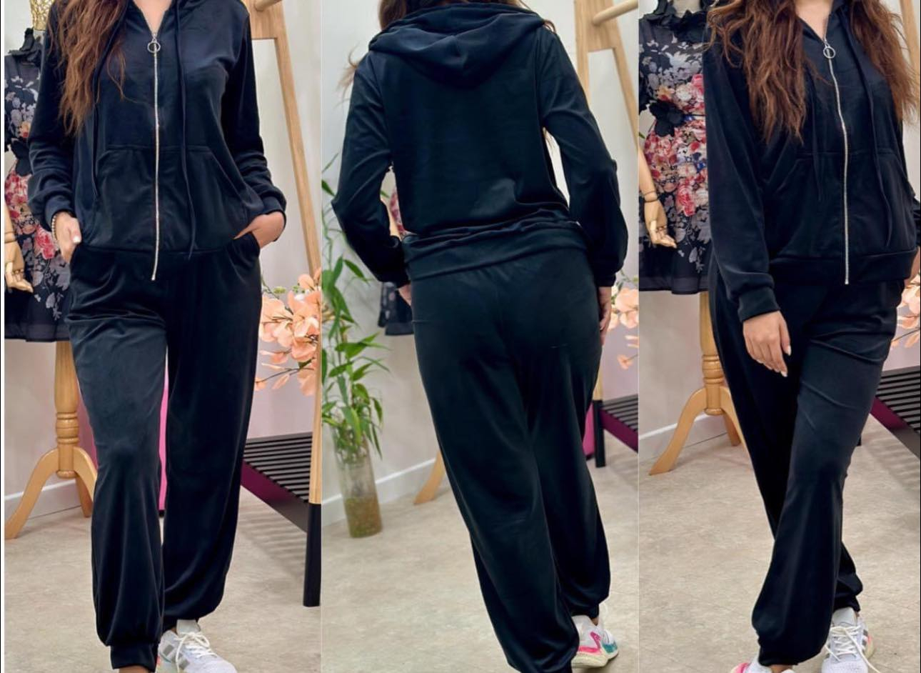 Transformă-ți garderoba cu acest compleu damă din catifea, perfect pentru momentele în care vrei să îmbini stilul cu confortul. Setul include pantaloni lejeri, strânși cu elastic la gleznă, și un hanorac cu glugă, fermoar și buzunare laterale, ideal pentru a-ți completa look-ul casual, dar sofisticat. Fabricat din catifea foarte fină, acest compleu îți oferă o senzație plăcută la atingere și un aspect luxos, potrivindu-se perfect în orice moment al zilei.