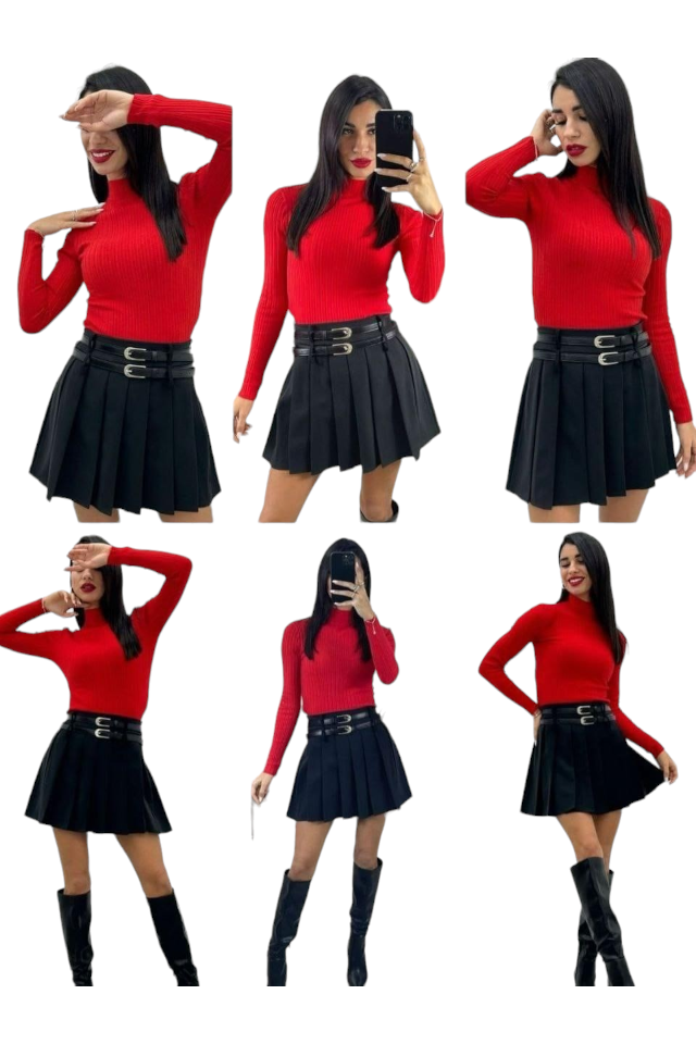 Fusta dama plisata cu curelusa in talie. Potrivită pentru orice ocazie - negru