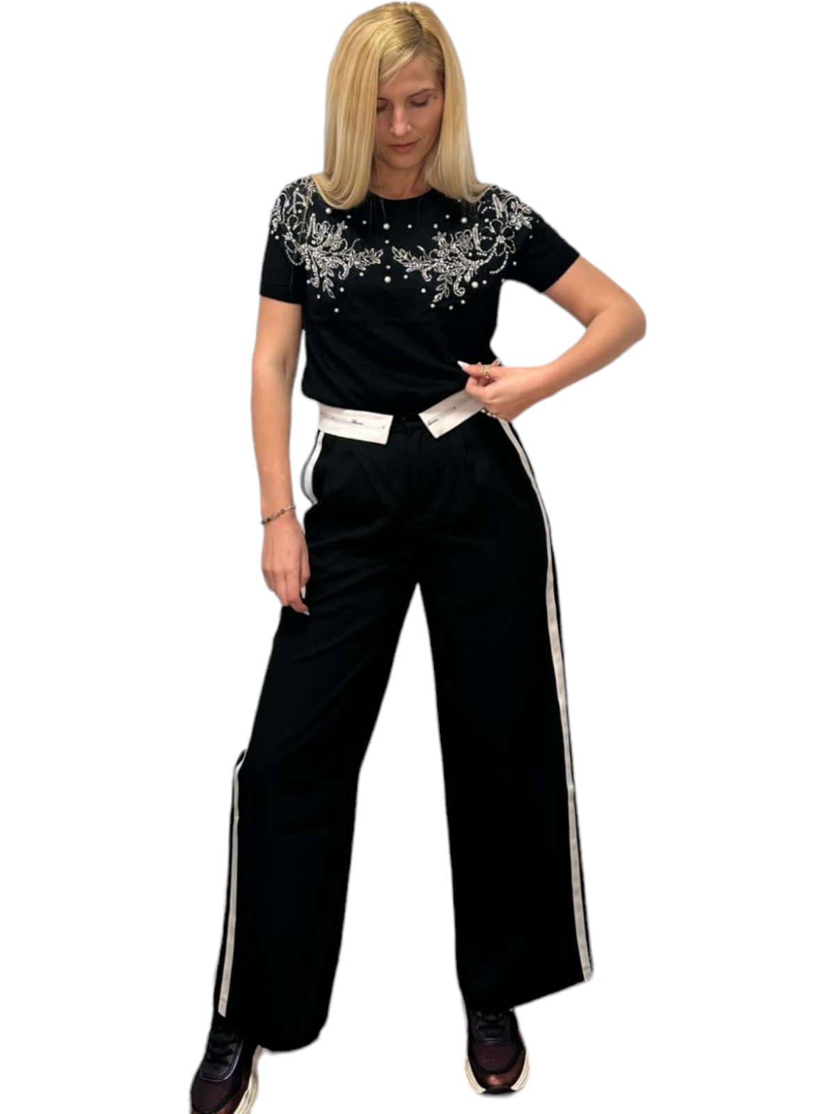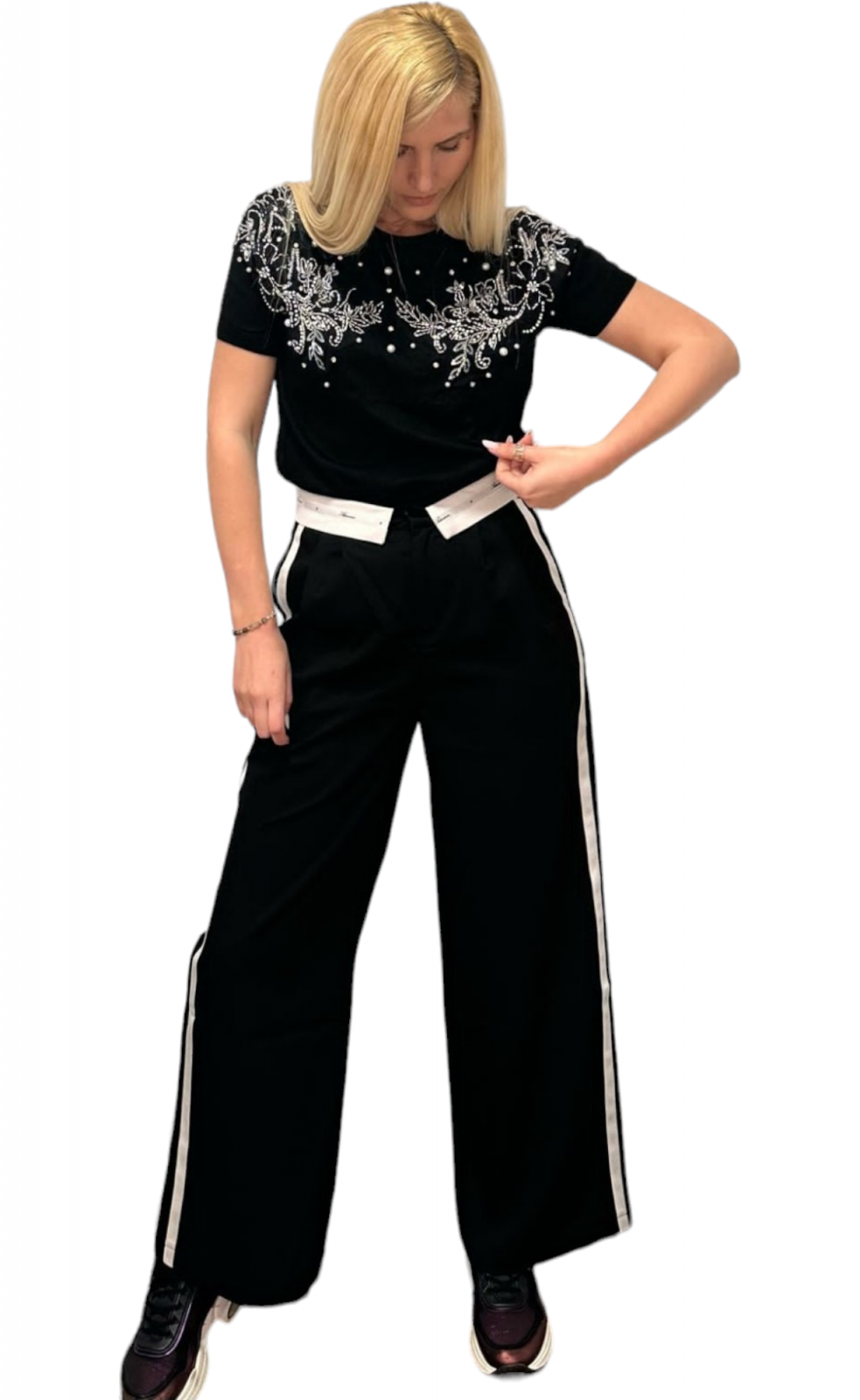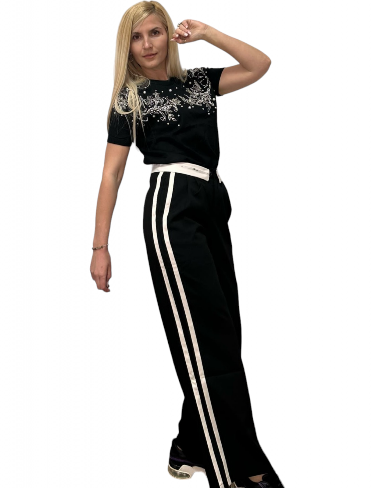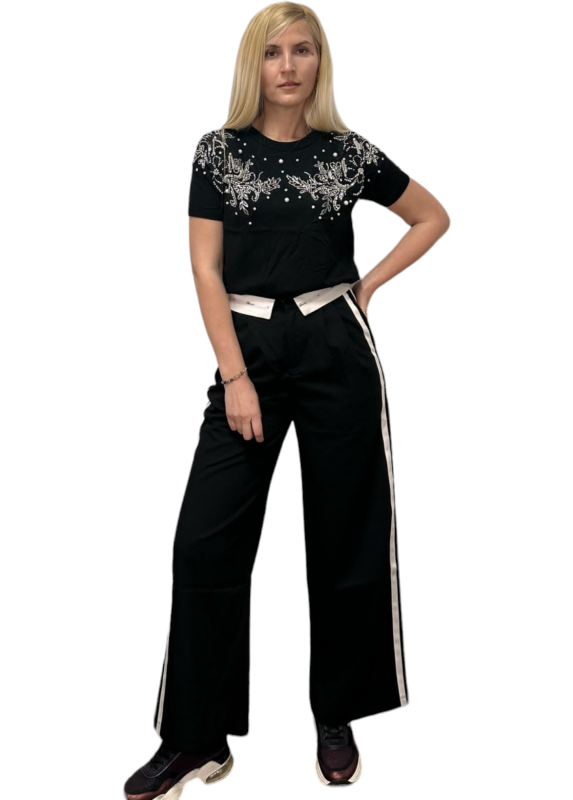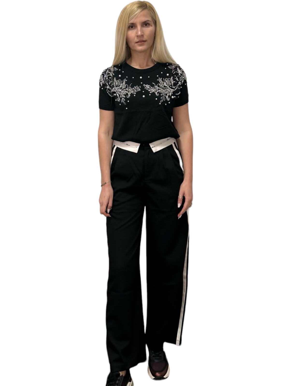 Bluza dama cu strasuri si perle aplicate. Posibilități de asortare nenumărate.