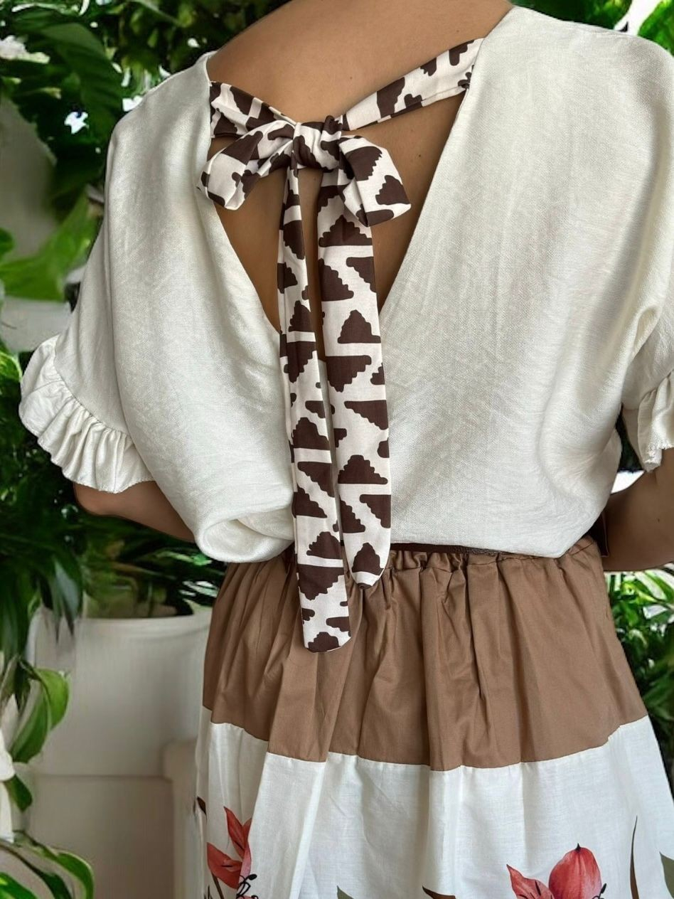 ✔ Culoare: ivory cu funda maro print geometric