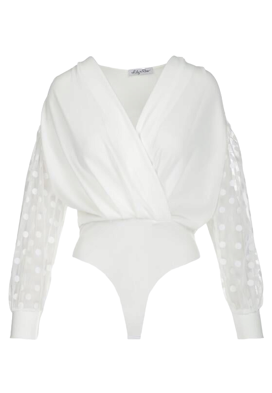 Body elegant cu maneca lunga din tull vine in completarea tinutelor tale.