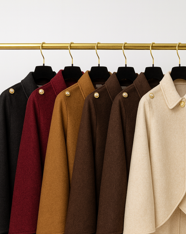 Capa este disponibilă în cinci variante de culoare – negru clasic, bej elegant, bordo intens, maro cald și roșu vibrant – fiind ușor de asortat atât cu ținute casual-chic, cât și cu outfituri elegante de seară.