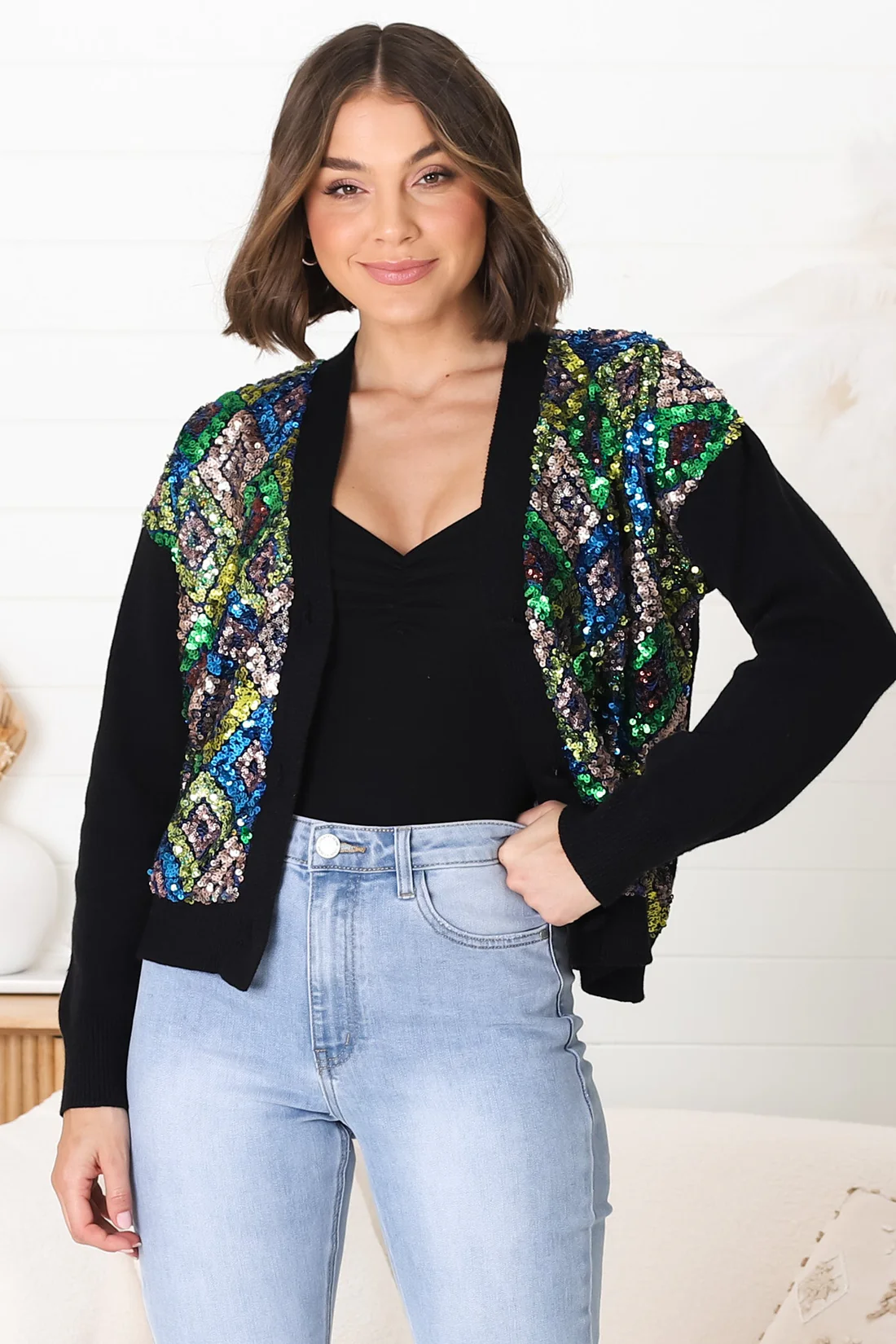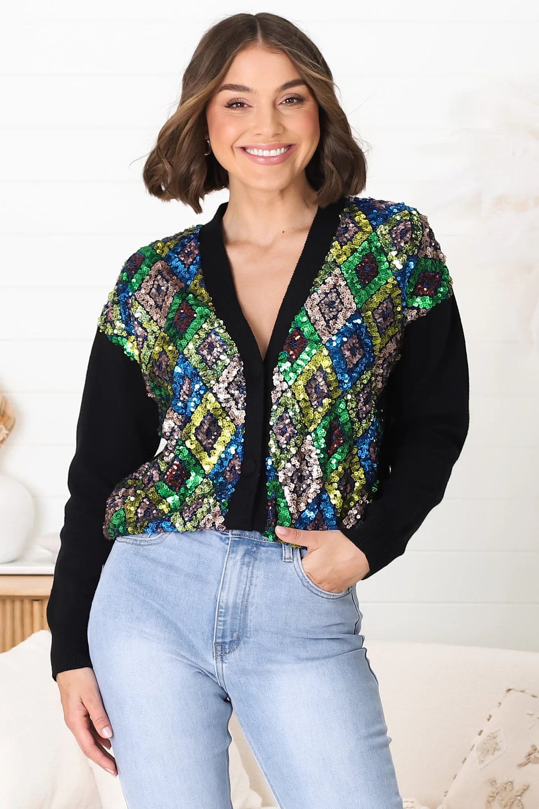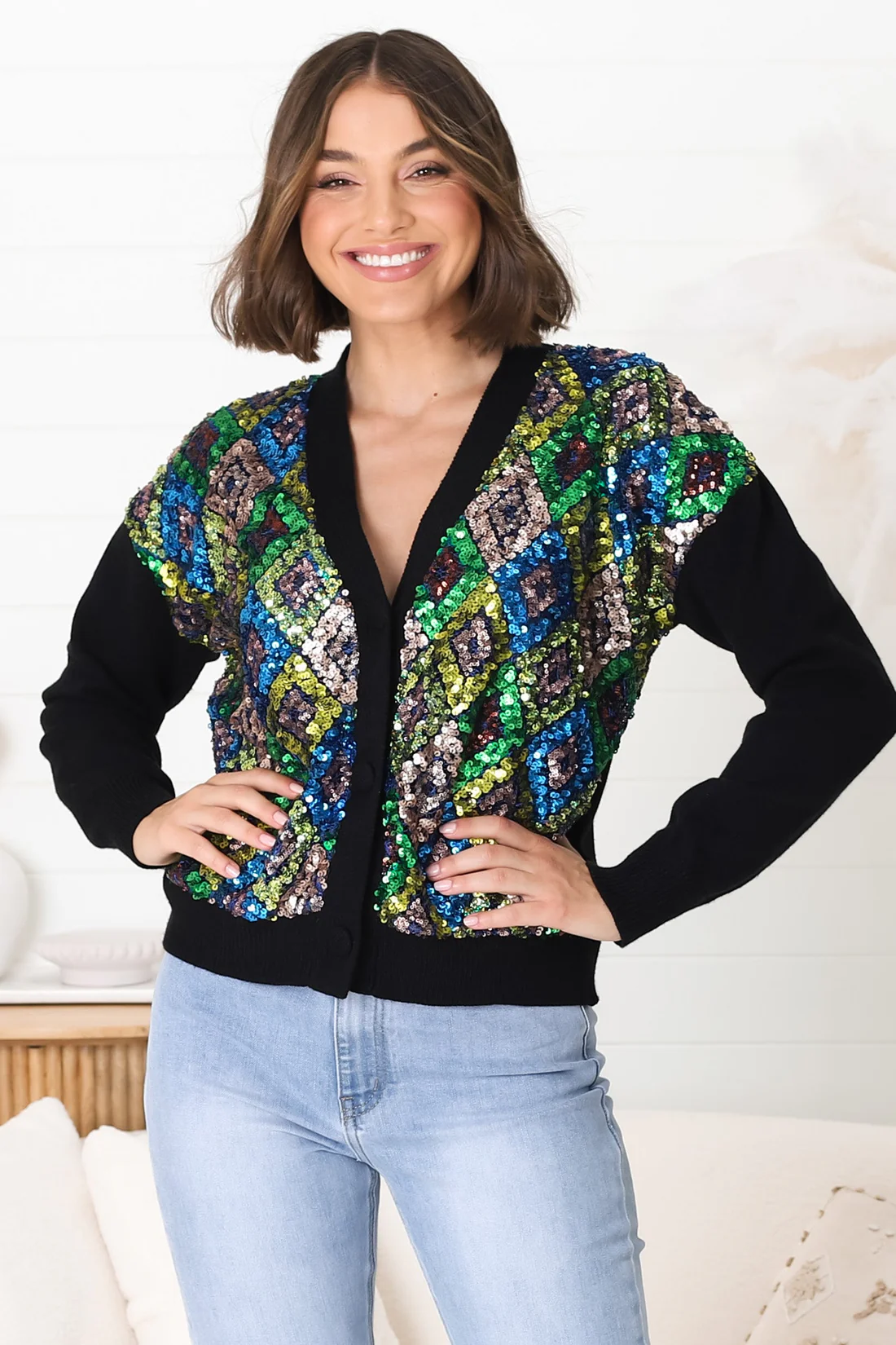 Cardigan Dama Crosetat din Amestec de Lana cu Paiete Multicolore - Marime universala: potrivita pt: 36 (S), 38 (M), 40 (L)