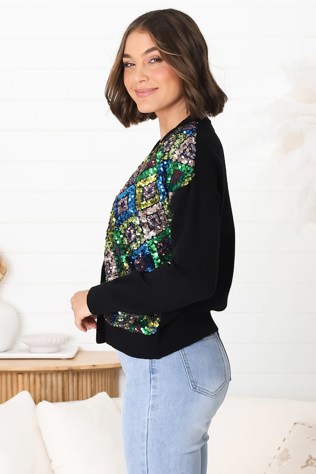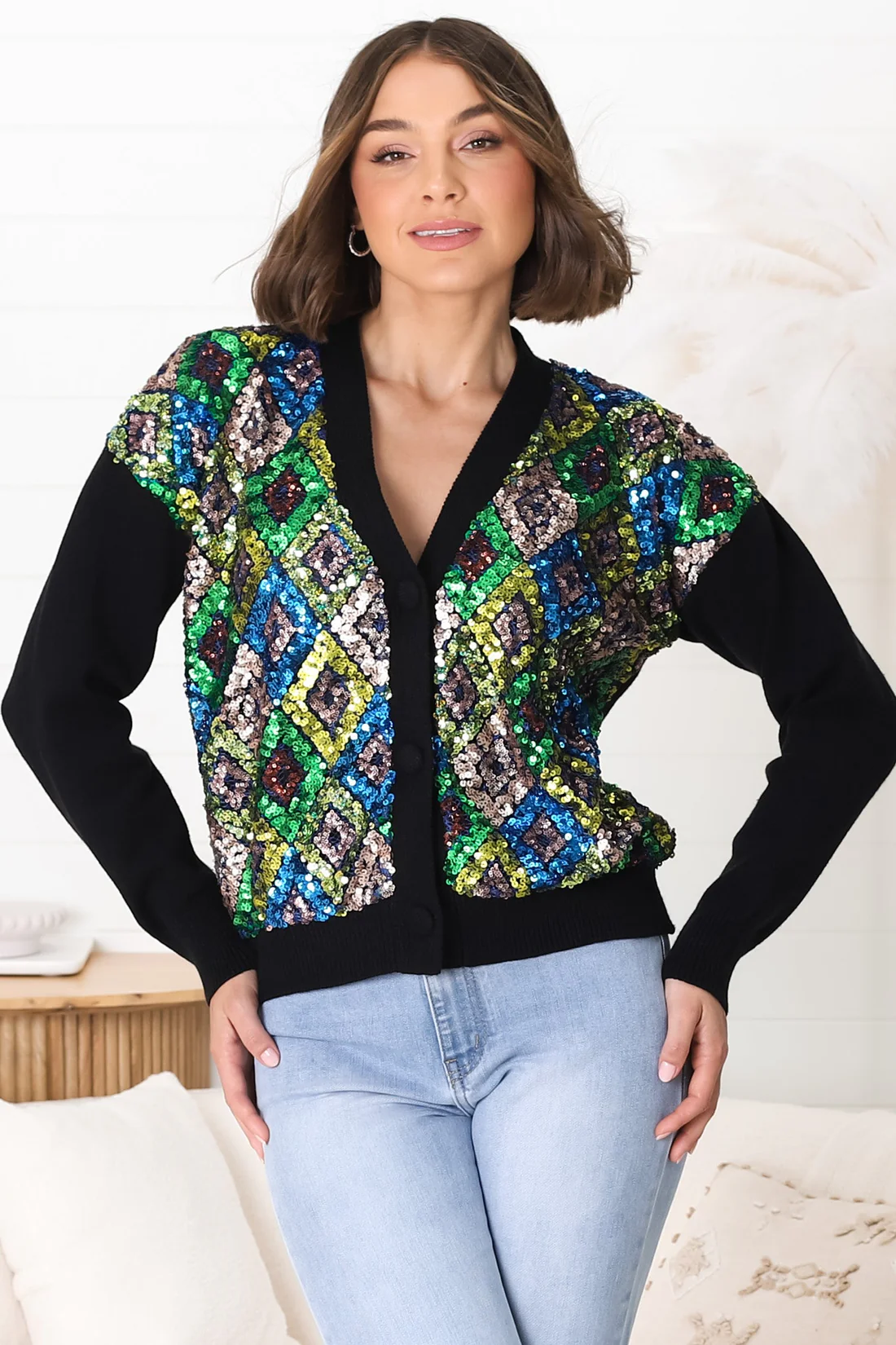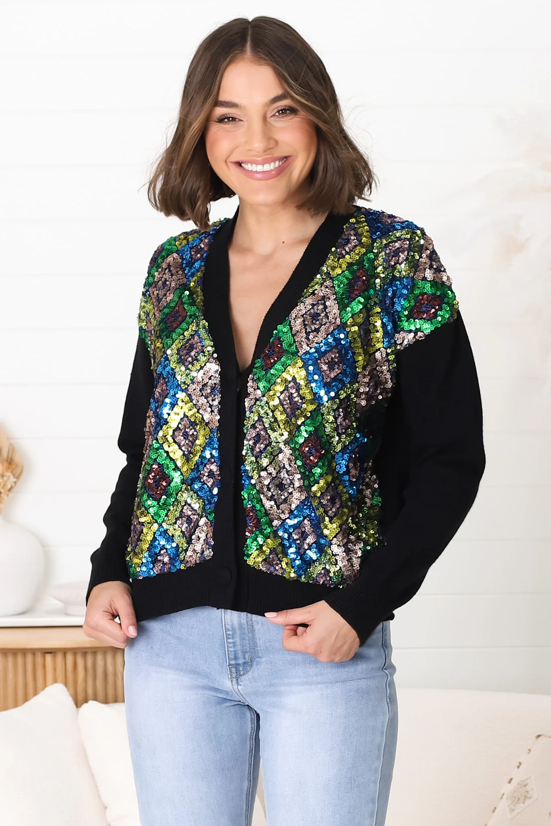 Cardigan Dama Crosetat din Amestec de Lana cu Paiete Multicolore - Marime universala: potrivita pt: 36 (S), 38 (M), 40 (L)