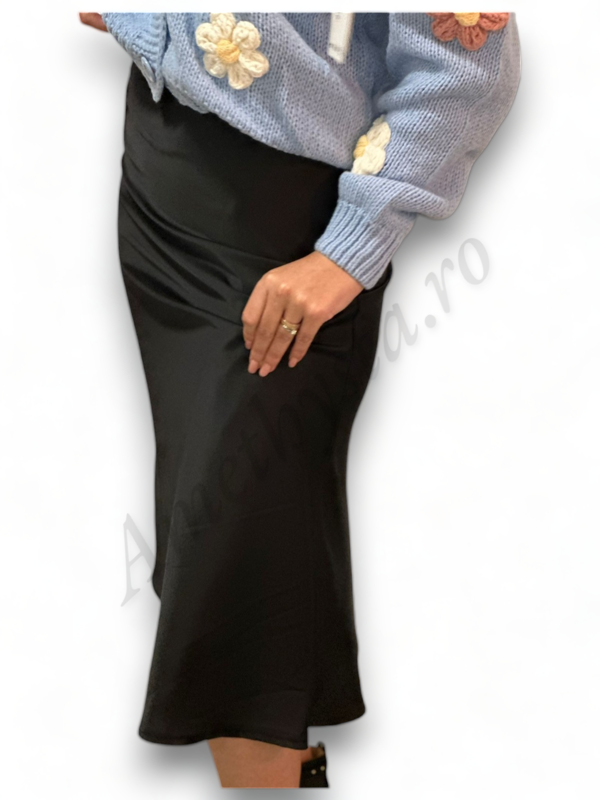 Fusta din bumbac satinat este alegerea perfectă pentru femeia care apreciază croiala lungă și ușor evazată, peste genunchi. Banda elastică în talie adaugă un element de confort și versatilitate, potrivindu-se oricărei siluete. Măsura universală asigură că vei găsi fusta perfectă pentru tine.
