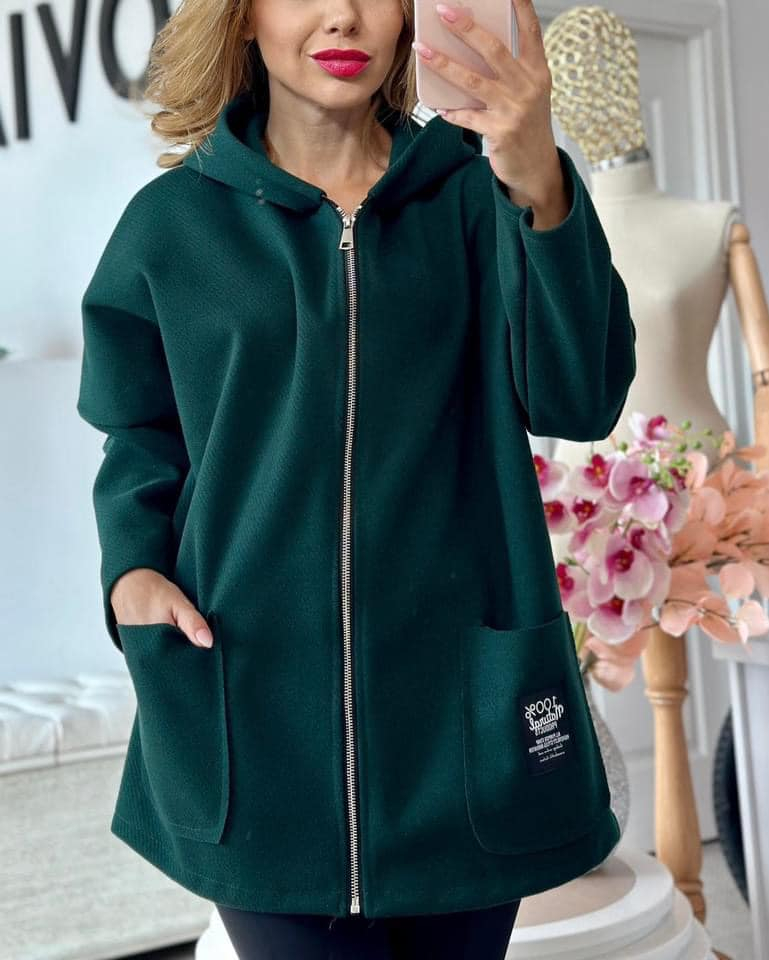 Jacheta Dama - Palton Dama Scurt cu Gluga si Fermoar - Marime universala (pt. S, M, L, XL, XL)
