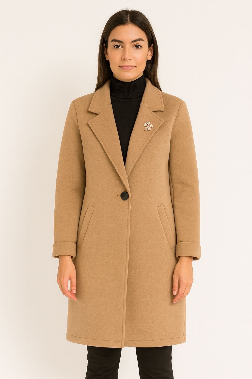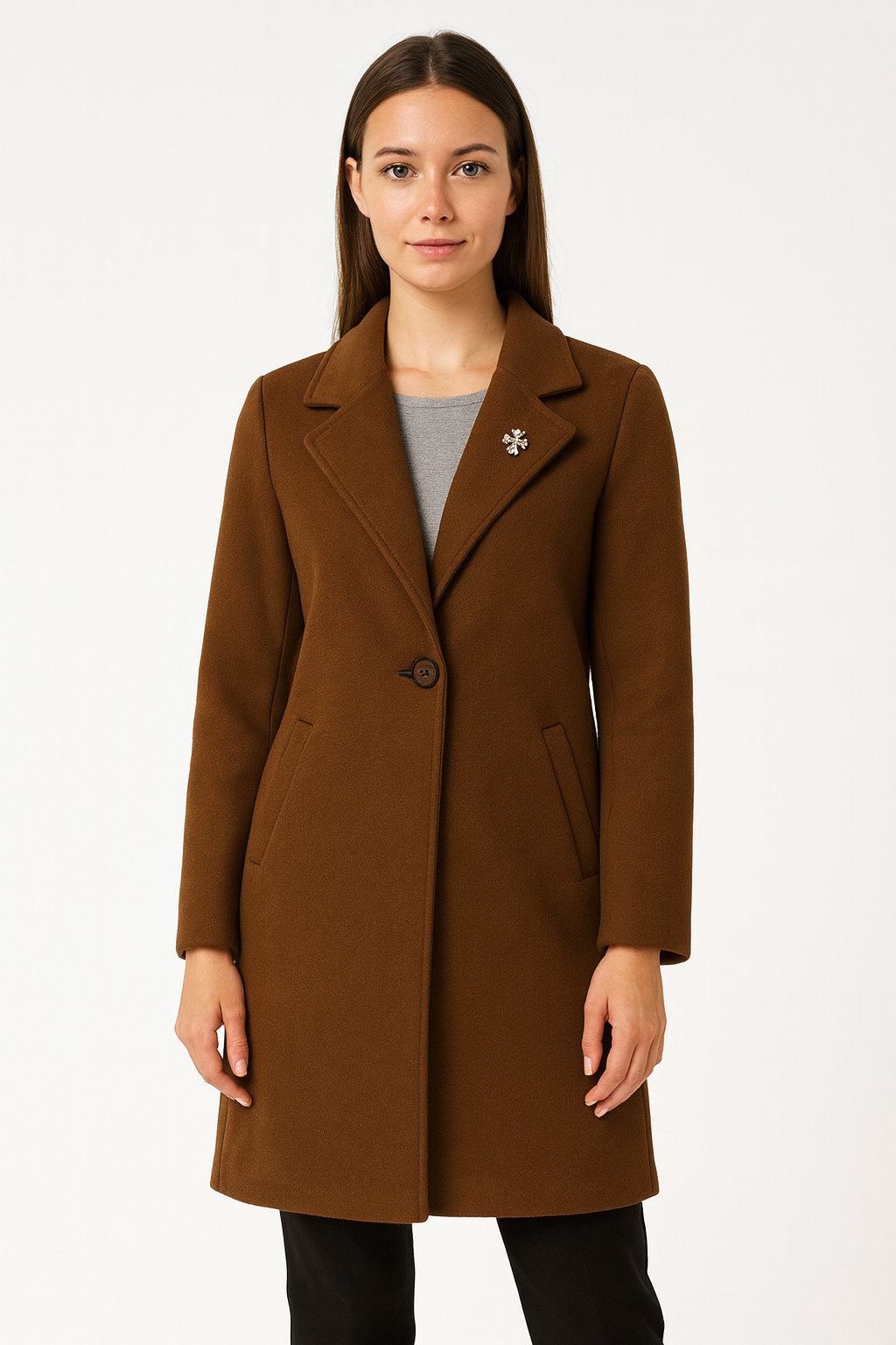 Paltonul LAMIA este piesa clasică ce nu trebuie să lipsească din garderoba unei femei moderne. Realizat din material de calitate, are croi elegant, guler cu rever și prindere simplă cu un nasture, oferind un aer sofisticat și versatil. Este disponibil în culori de sezon: maro, verde, bej și negru, pentru a completa orice ținută.
