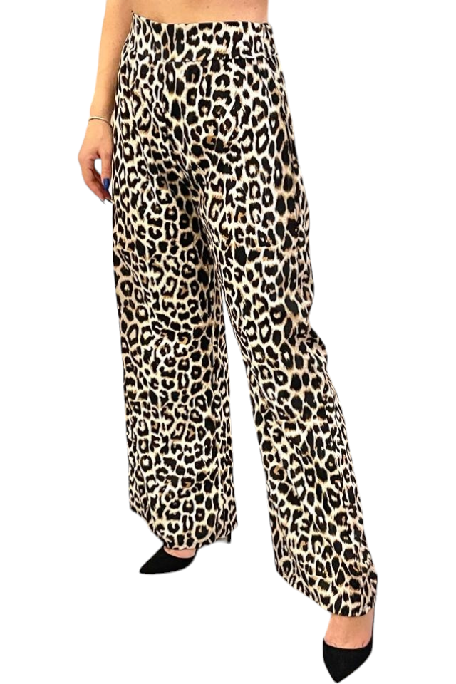 Pantaloni dama casual animal print - Ankara, fabricati in Italia. Croiala lejera si imprimeuri  diverse: leopard