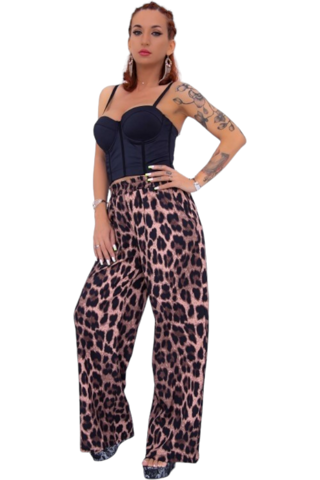Pantaloni dama casual animal print - Ankara, fabricati in Italia. Croiala lejera si imprimeuri  diverse: leopard2