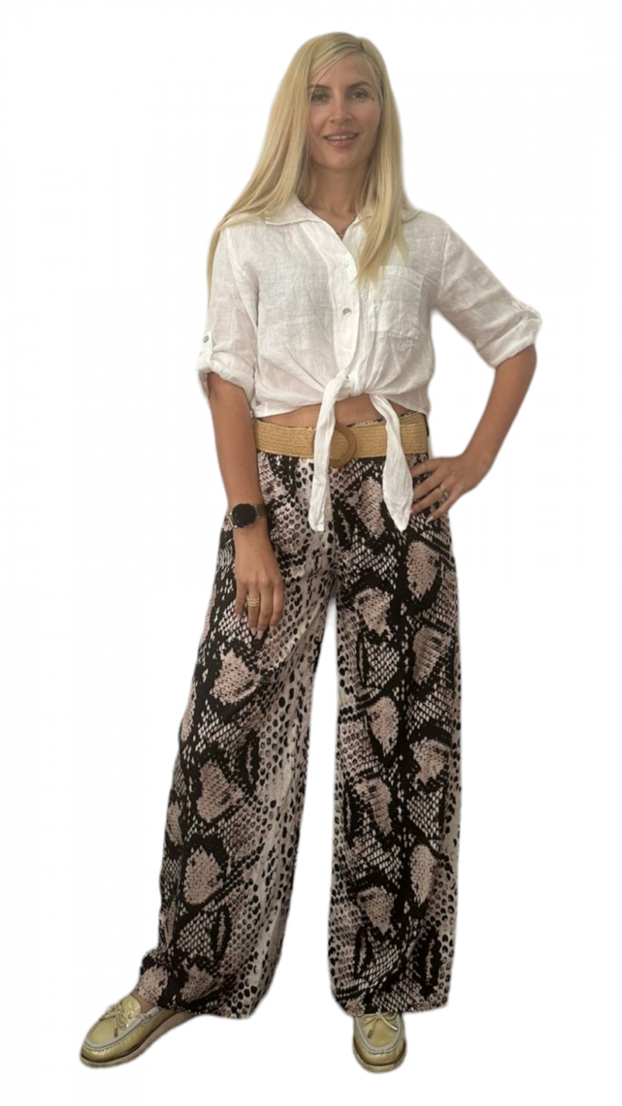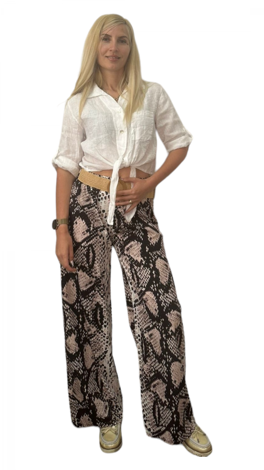 Pantaloni dama cu curea casual animal print - Azara - leopard, fabricati in Italia. Croiala lejera si imprimeuri  diverse: sarpe