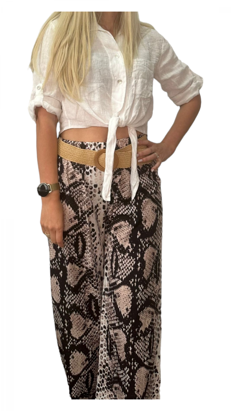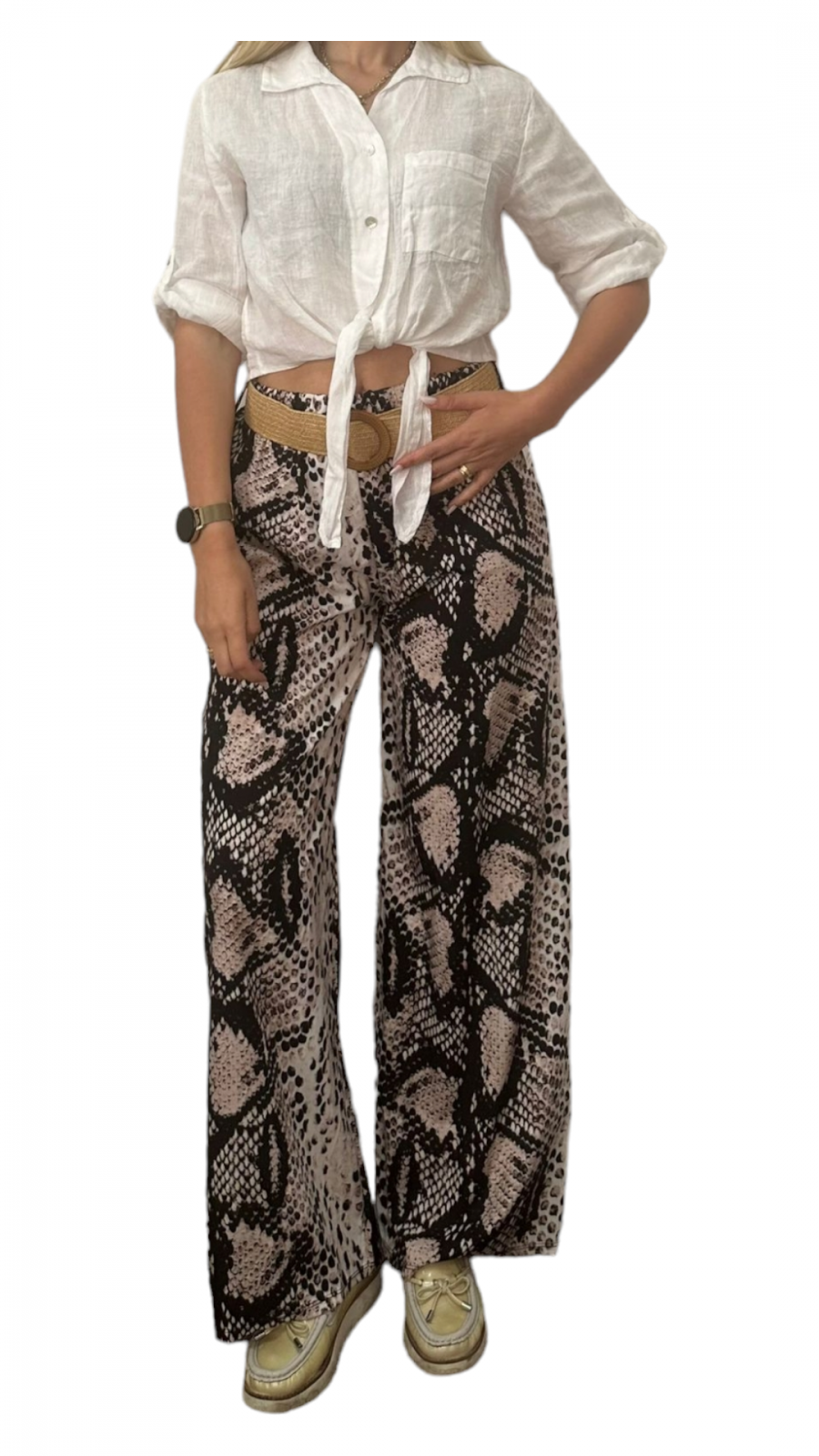 Pantaloni dama cu curea casual animal print - Azara - sarpe