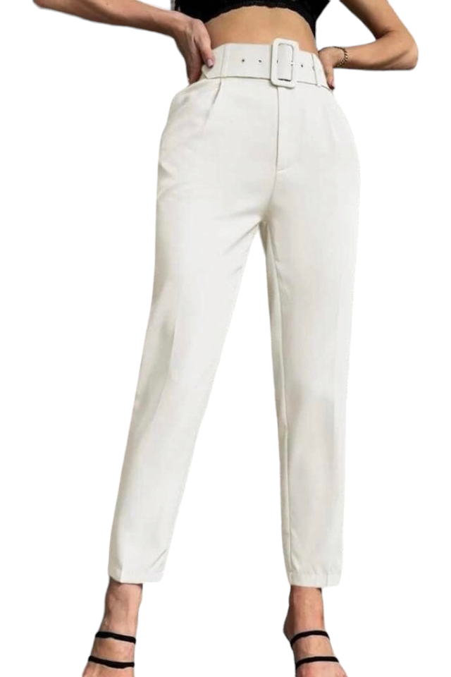 Pantaloni dama cu dunga si curea asortata - Sammy. Cu o croiala conica si talie inalta, acesti pantaloni din material premium sunt disponibili intr-o multitudine de culori de sezon - alb