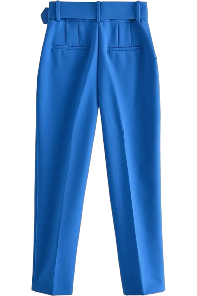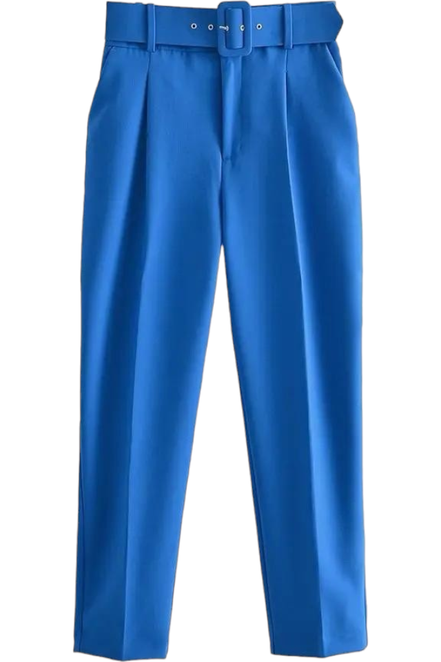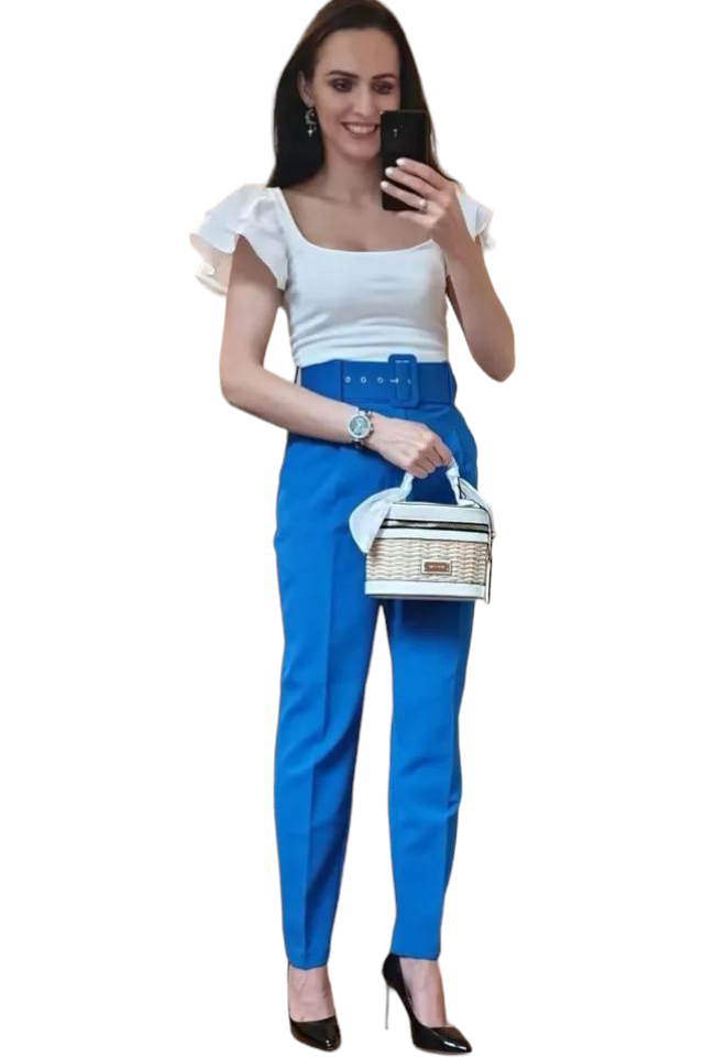 Pantaloni dama cu dunga si curea asortata - Sammy. Cu o croiala conica si talie inalta, acesti pantaloni din material premium sunt disponibili intr-o multitudine de culori de sezon - albastru electric