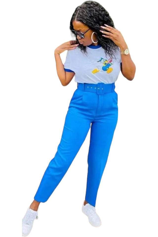 Pantaloni dama cu dunga si curea asortata - Sammy - albastru electric
