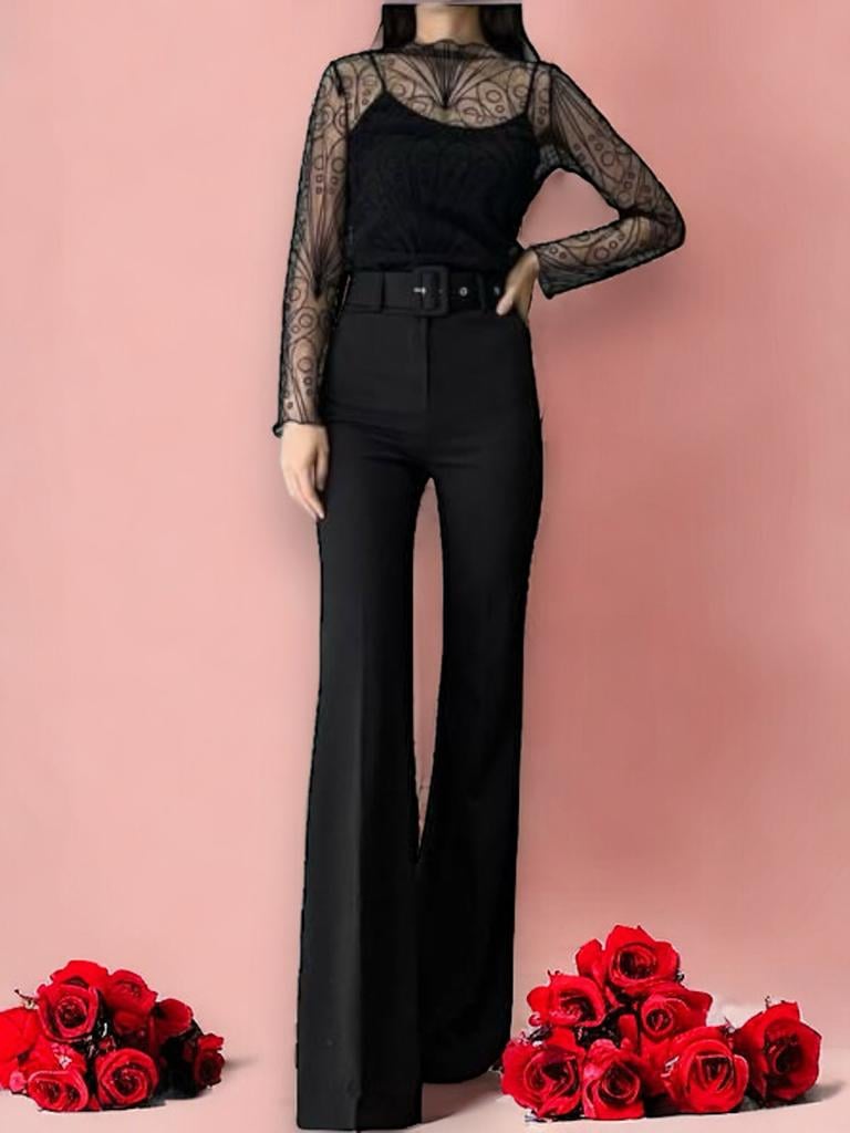 Descoperă eleganța cu Pantalonii Evazați Dama, detaliu rafinat dat de curelusa din talie. Disponibili în diverse culori, acești pantaloni lungi și office conferă un croi evazat, evidențiind talia. Realizați din 95% poliester și 5% elastan, se sunt o alegere chic pentru orice ocazie. Completează-ți garderoba cu rafinament!