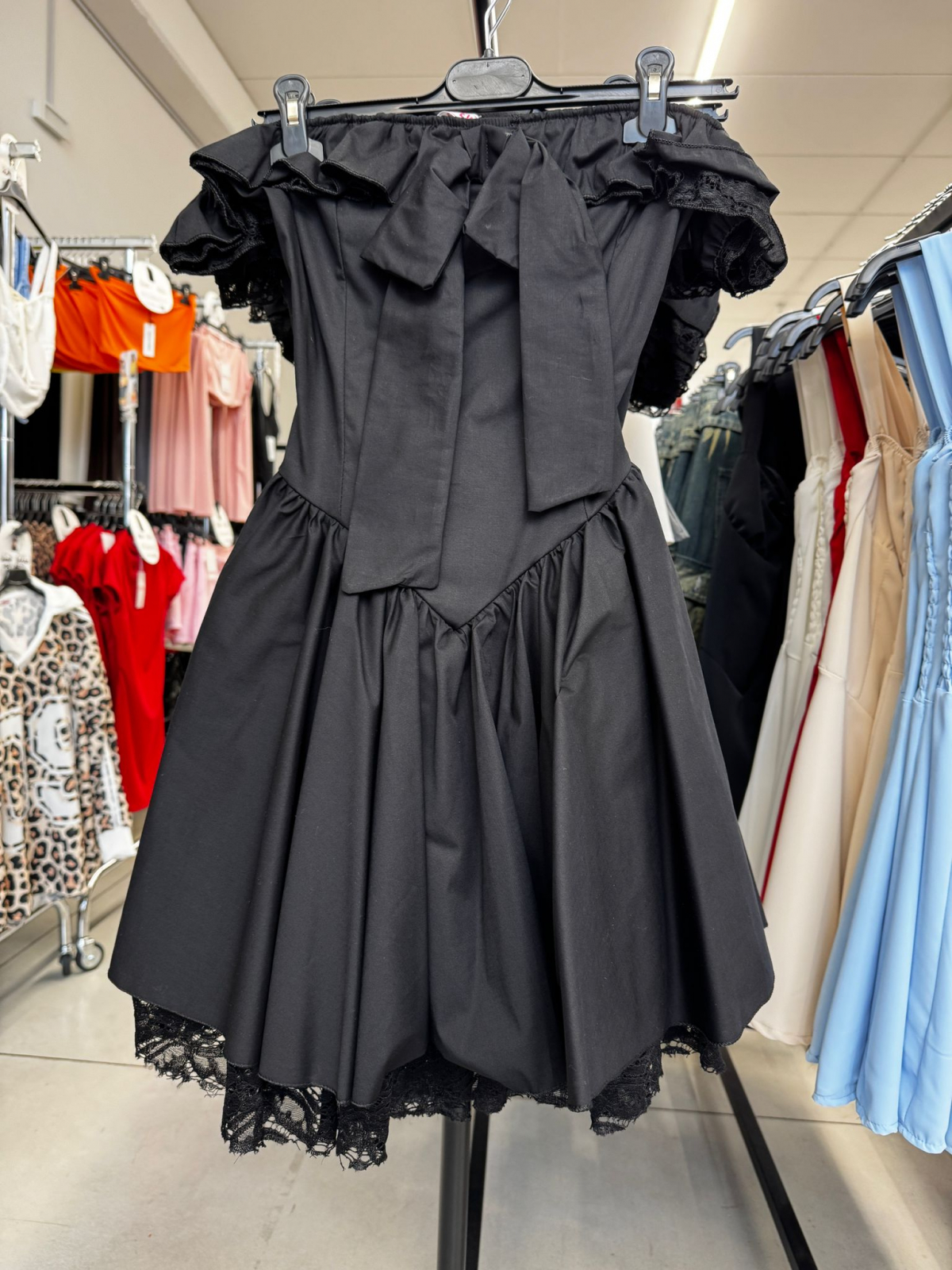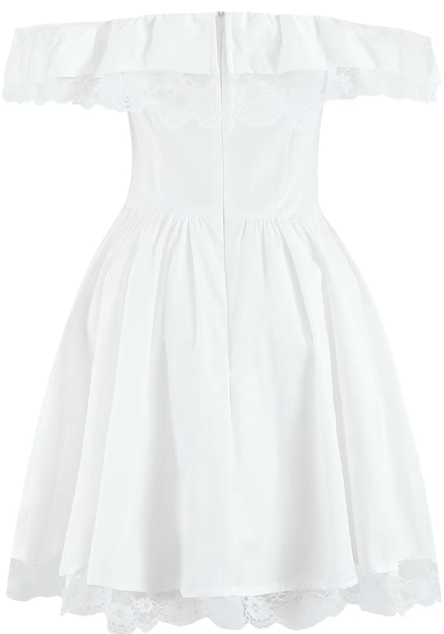 Descopera rafinamentul absolut cu rochia Bardot Bow Detail Lace A-Line! Aceasta rochie mini cu croiala A-line, design off shoulder, volanase delicate si detalii de dantela este perfecta pentru evenimente speciale. Realizata dintr-un material premium (poliester + bumbac) cu fermoar YKK, iti ofera confort si rezistenta. Fundita decorativa si volanasele adauga un aer feminin si romantic, iar lungimea mini iti scoate in evidenta picioarele. Este disponibila in culorile alb si negru, marime universala s-m.