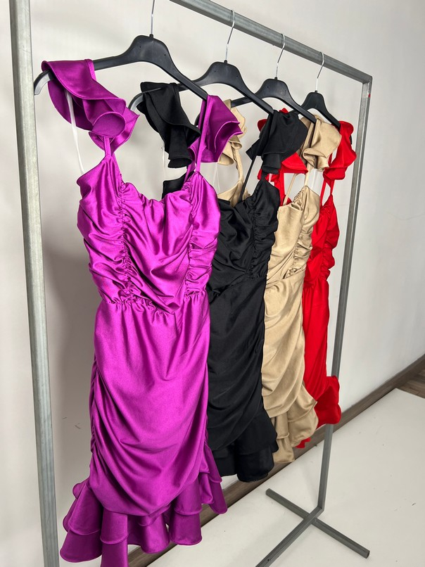 Rochie Dama scurta cu bretele cu volanase