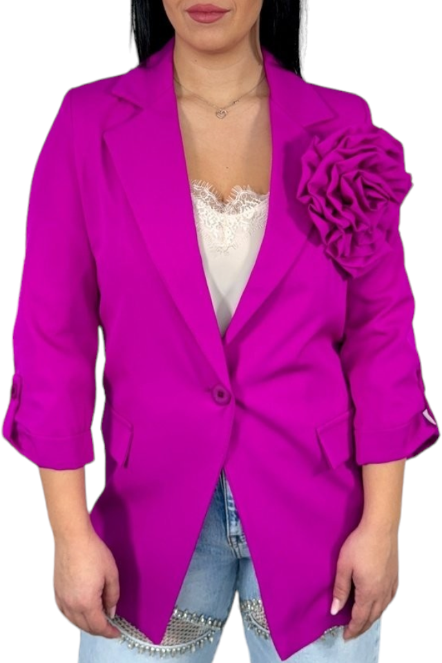 Sacou dama cu trandafir - Vicky, cu maneca trei sferturi si trandafir aplicat - mov