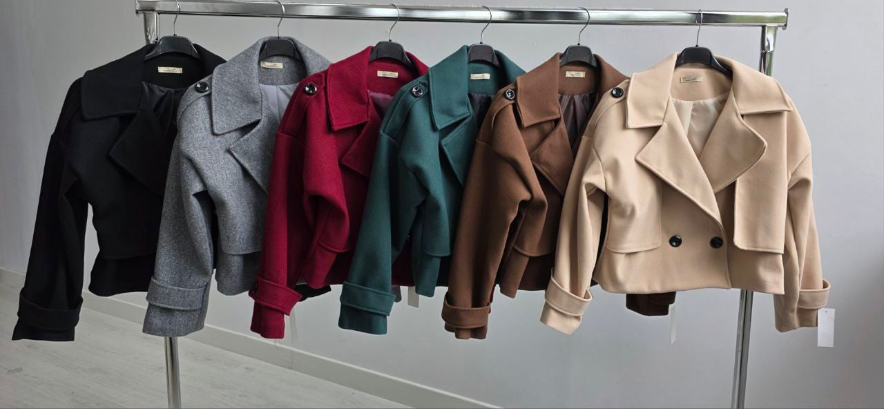 Jacheta scurta eleganta cu croi modern si revere clasice, universala S-L, ideala pentru tinute casual sau office.