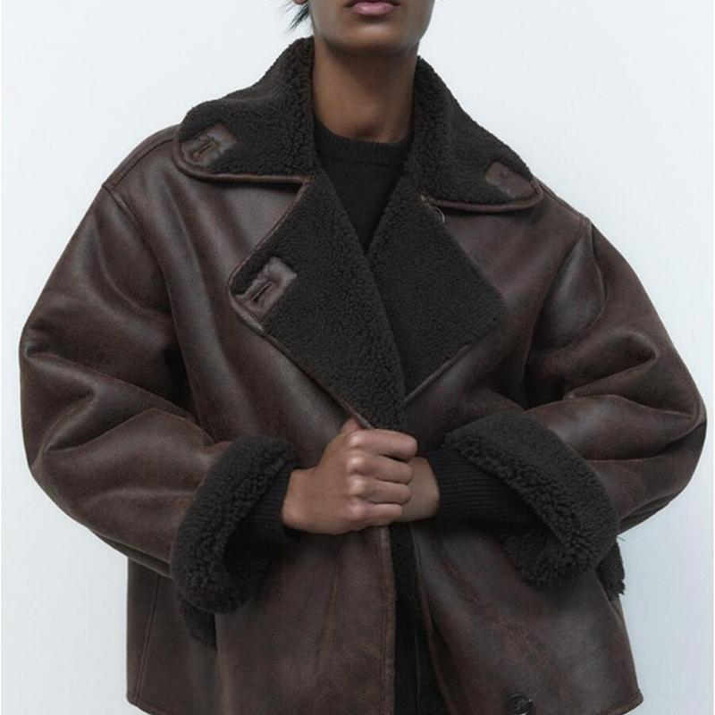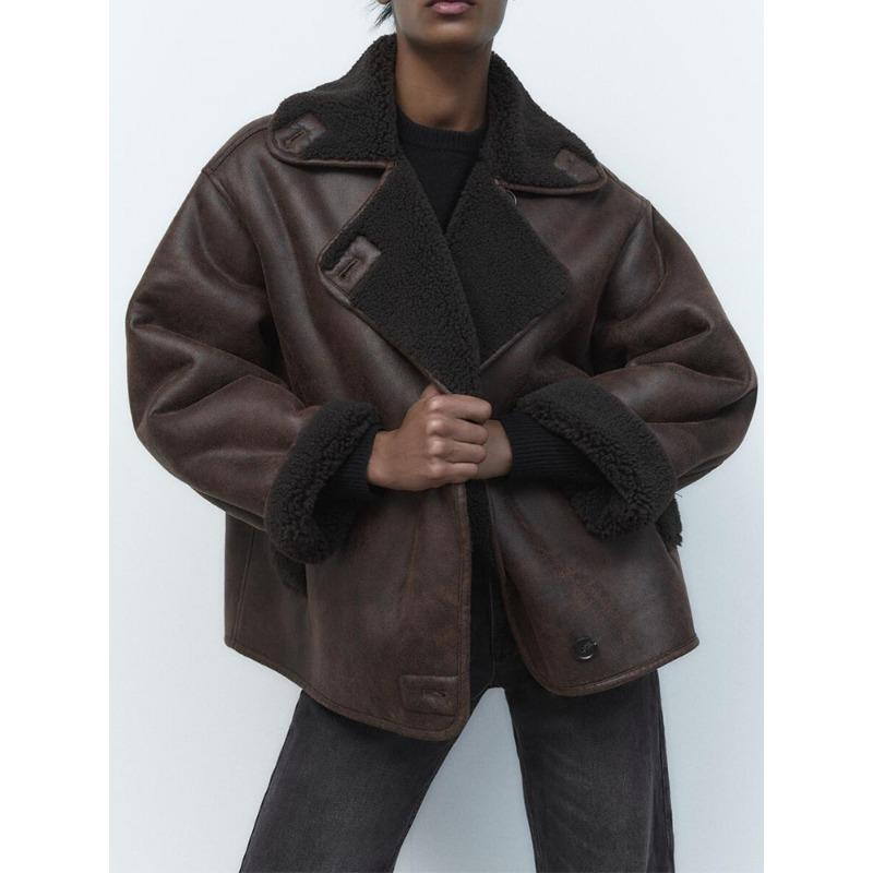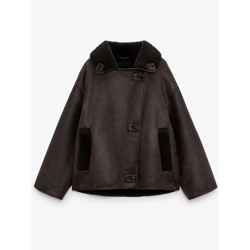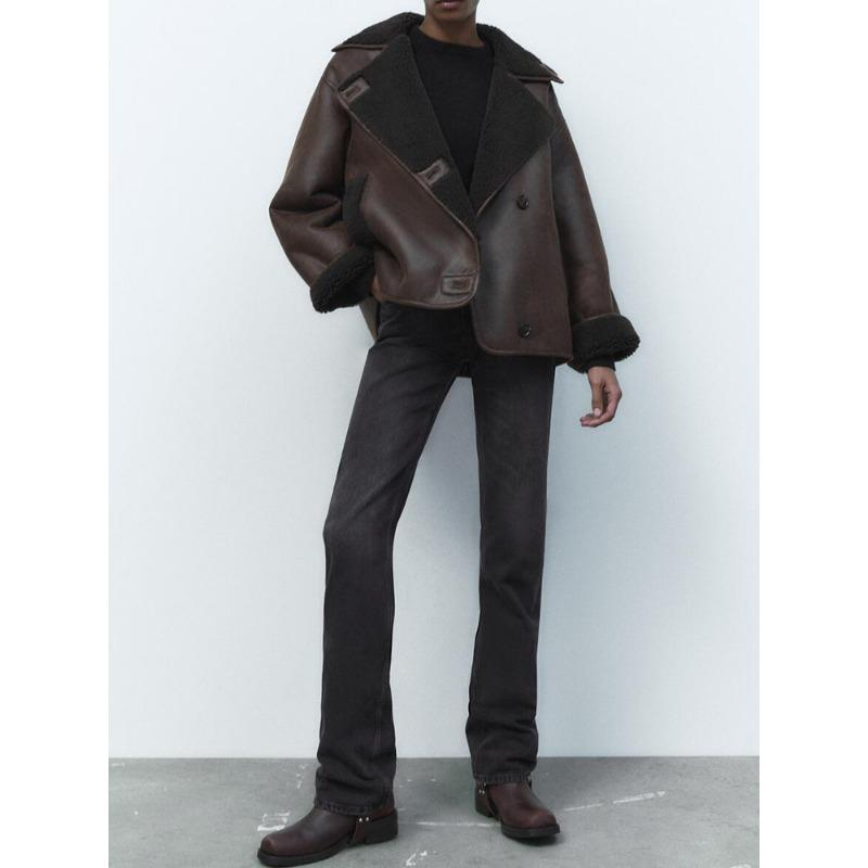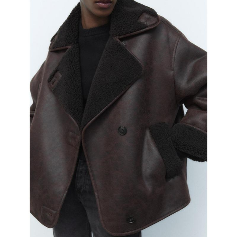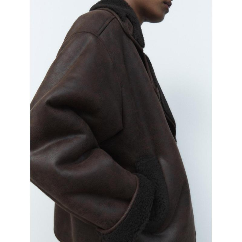 Un cojoc dintr-o combinație de piele întoarsă și blană ecologica plăcută la atingere, care servește și drept căptușeală. Modelul are diverse accesorii și cusături decorative. Masuri: S, M, L
