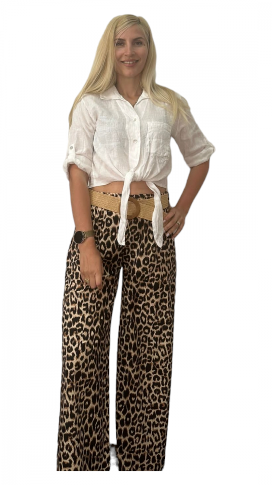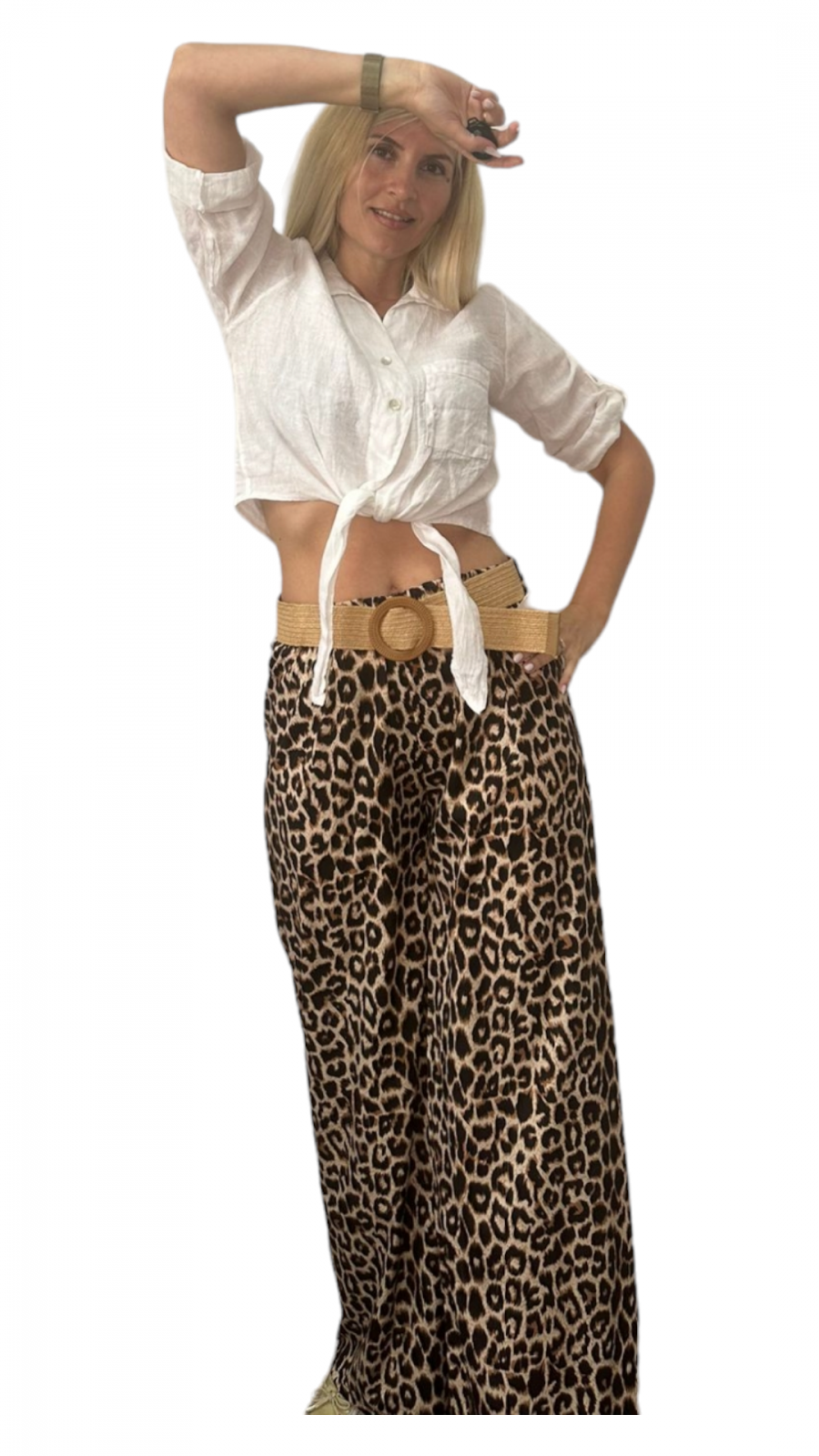 Pantaloni dama cu curea casual animal print - Azara - leopard, fabricati in Italia. Croiala lejera si imprimeuri  diverse: leopard