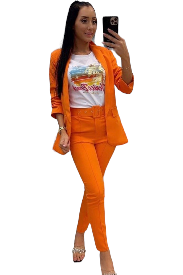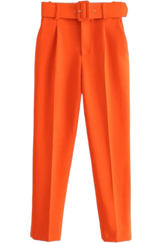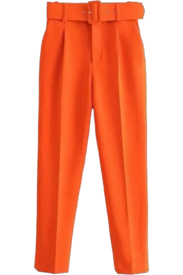 Pantaloni dama cu dunga si curea asortata - Sammy. Cu o croiala conica si talie inalta, acesti pantaloni din material premium sunt disponibili intr-o multitudine de culori de sezon - orange