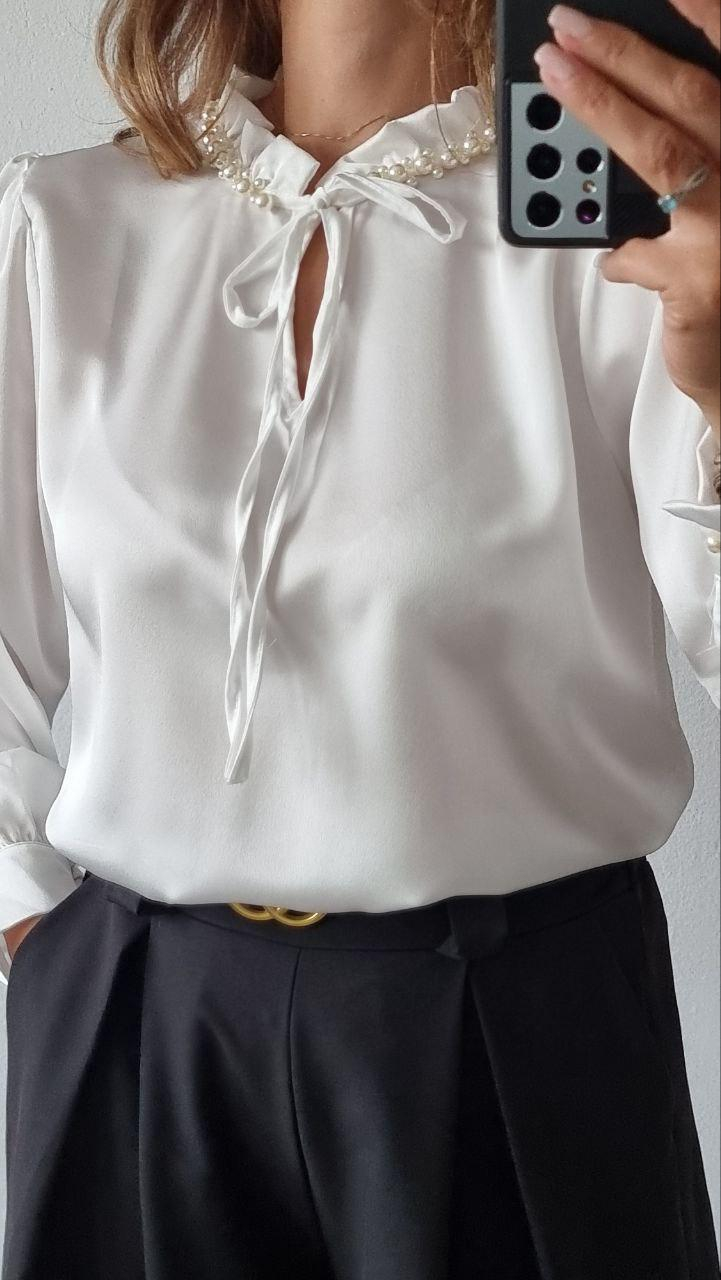 Bluza dama material satinat si guler cu perle - Marime universala: potrivita pt: S, M, L