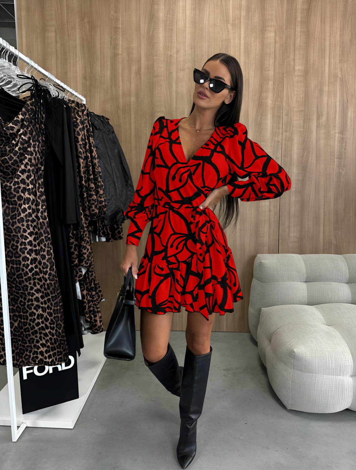 Rochie Clos cu Imprimeu si Maneca Lunga