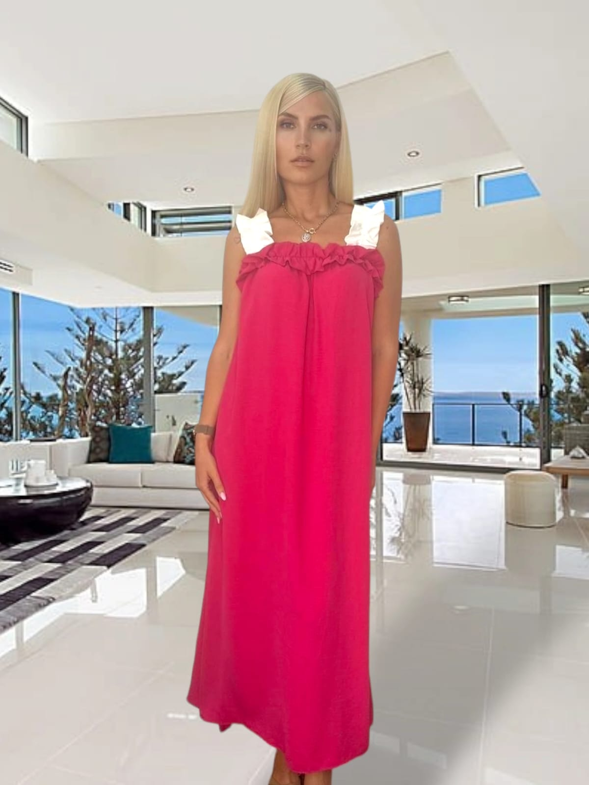 Rochie Dama de Vara cu Bretele si Volanase si Curea CADOU - Mona