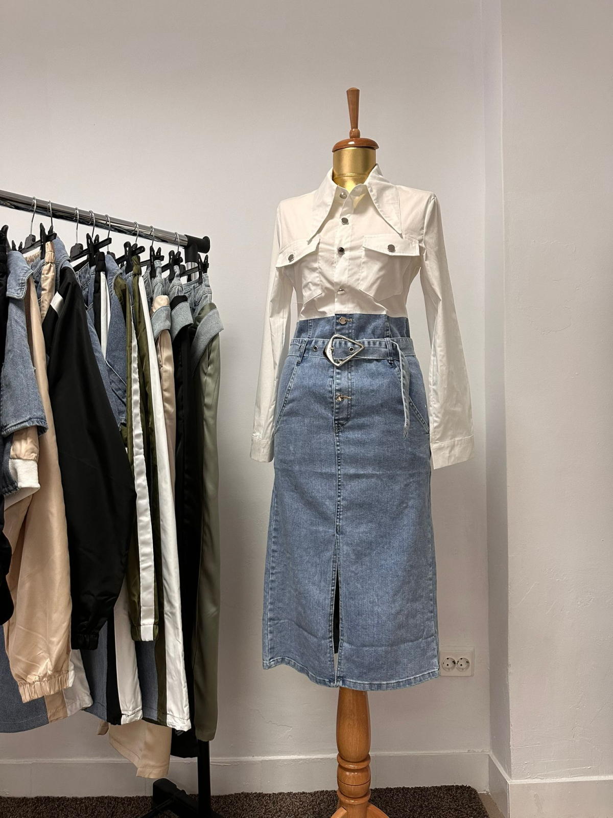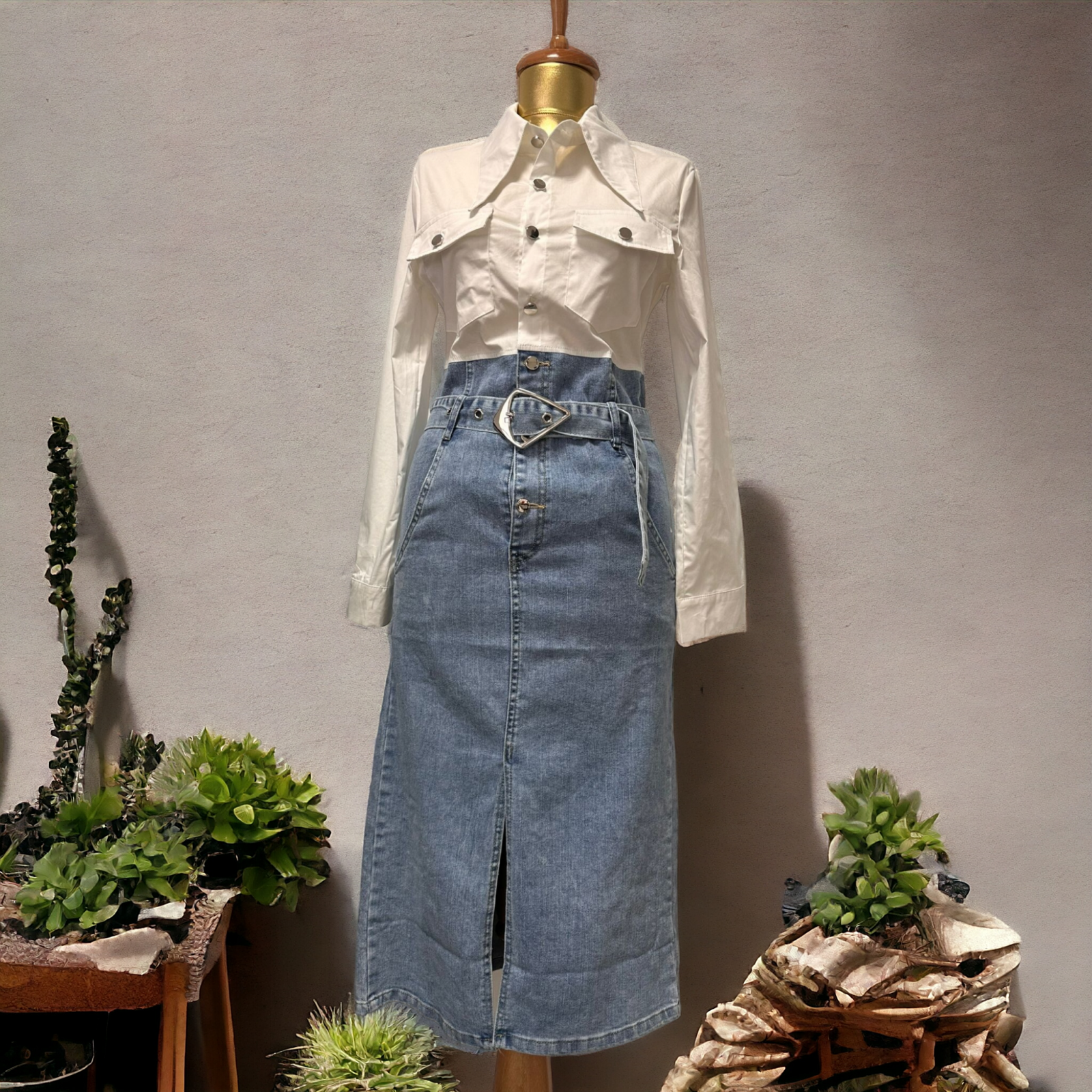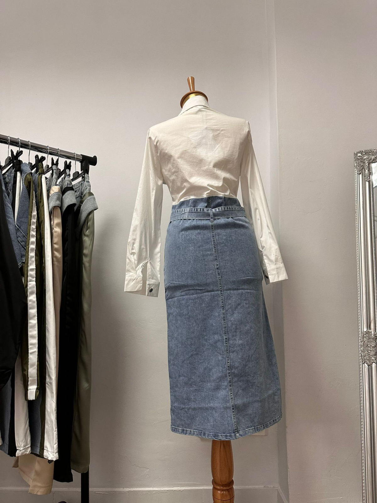 Rochie Dama Denim Blend, cu guler tip camasa, inchidere cu nasturi si curea in talie.