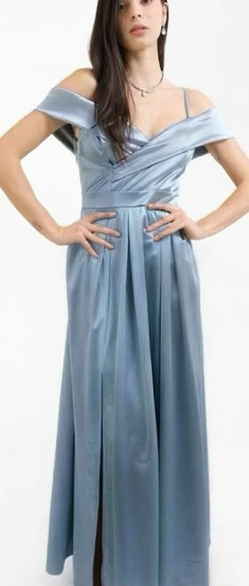 Rochie Dama Lunga Satinata cu Revere si Bretele, Italia