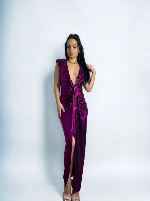 Rochie Dama Metalic croiala cu fronseuri si decolteu adanc - Hannah