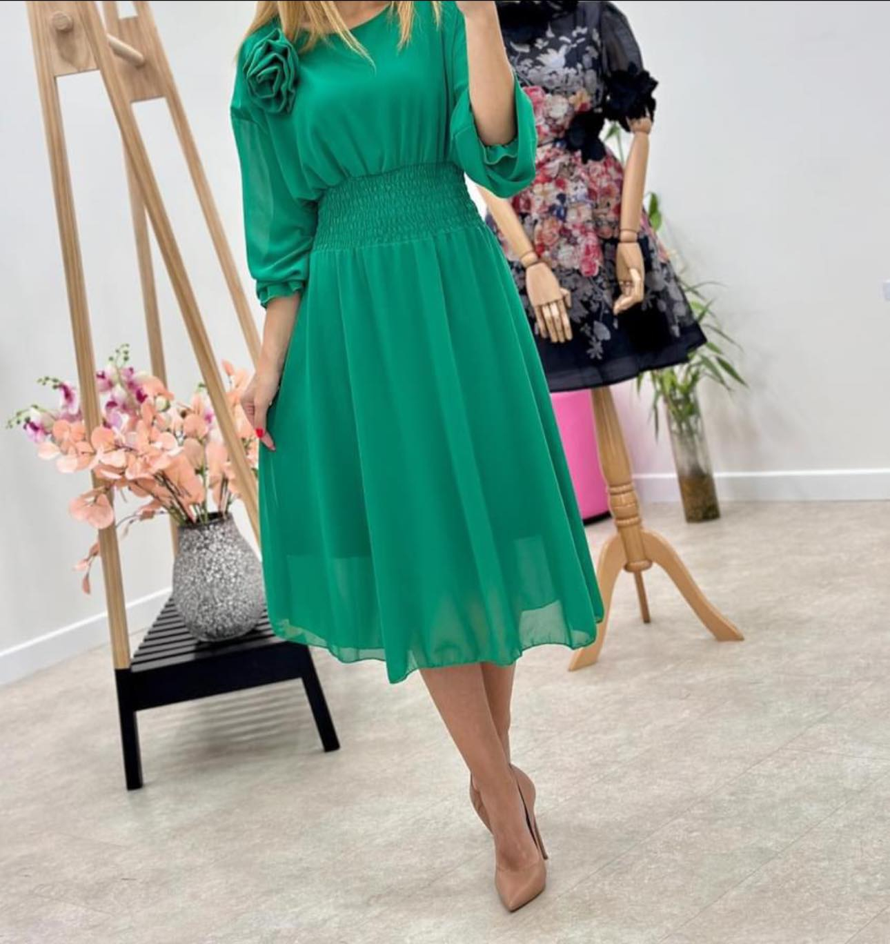 Rochie Dama Midi din Voal Captusit cu Trandafir pe Umar, Italia - Marimea Universala - recomandat pentru 36 (S), 38 (M), 40(L)