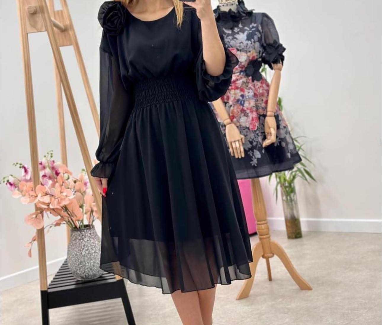 Rochie Dama Midi din Voal Captusit cu Trandafir pe Umar