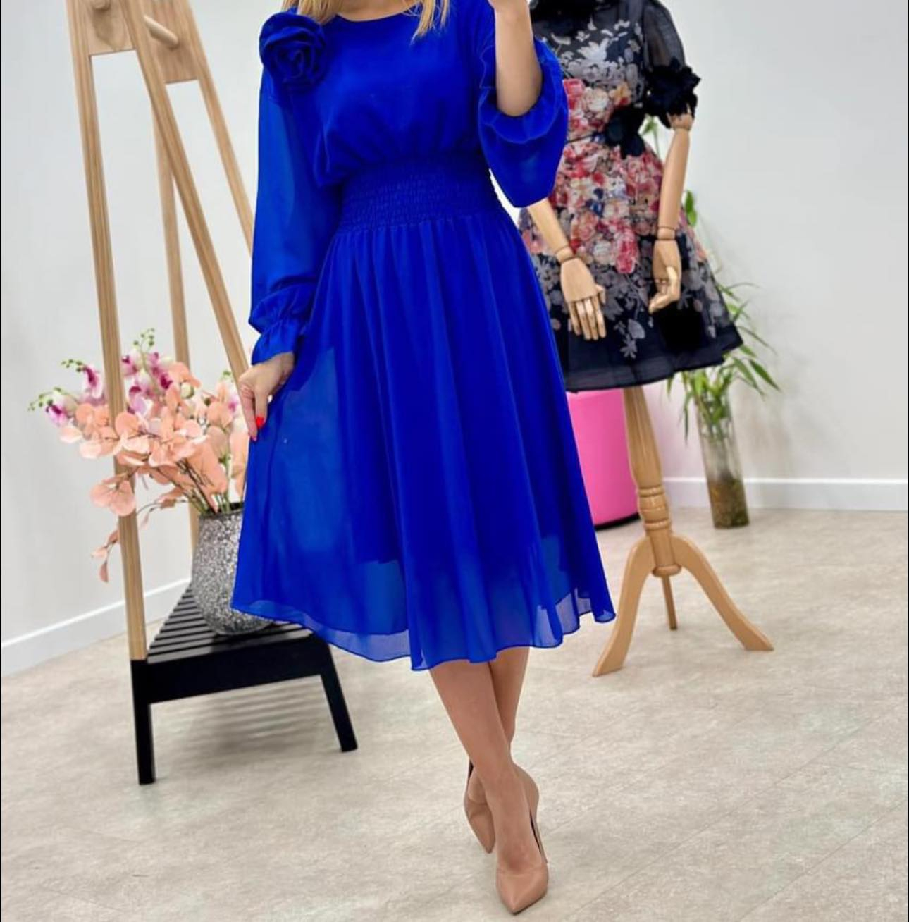 Rochie Dama Midi din Voal Captusit cu Trandafir pe Umar, Italia - Marimea Universala - recomandat pentru 36 (S), 38 (M), 40(L)
