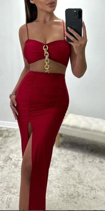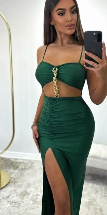 Rochie de seara cu zale aurii si decupaj in zona taliei