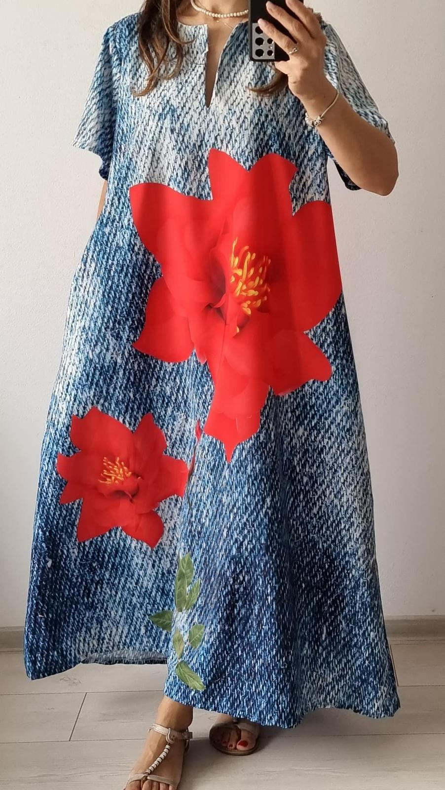 Rochie de vara lunga cu buzunare imprimata cu model Fashion