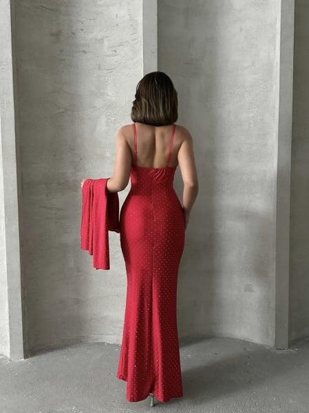 Rochie lunga eleganta cu bretele si strasuri – Stralucire si rafinament - MERT