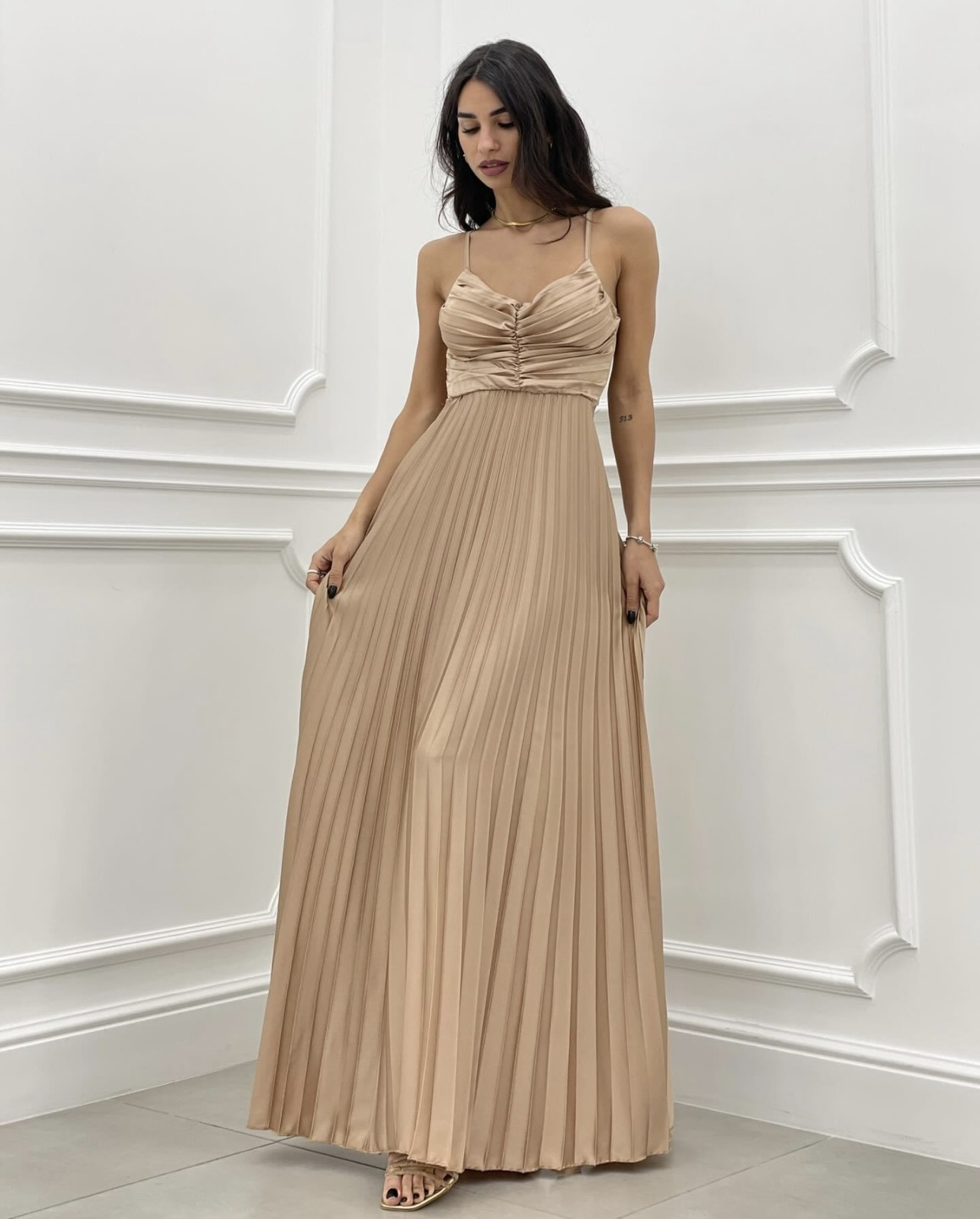 Rochie plisata de damă cu bretele - Mary