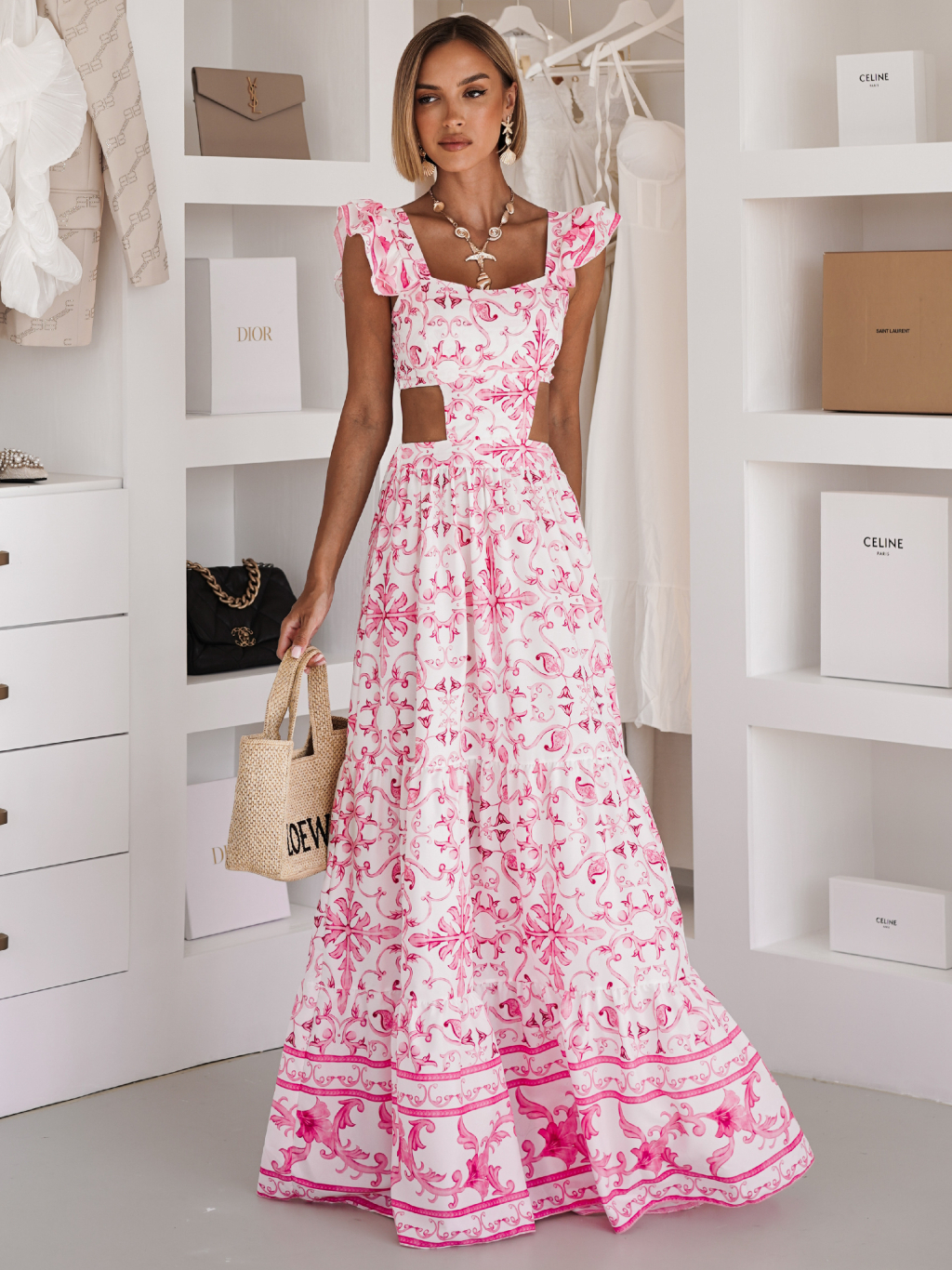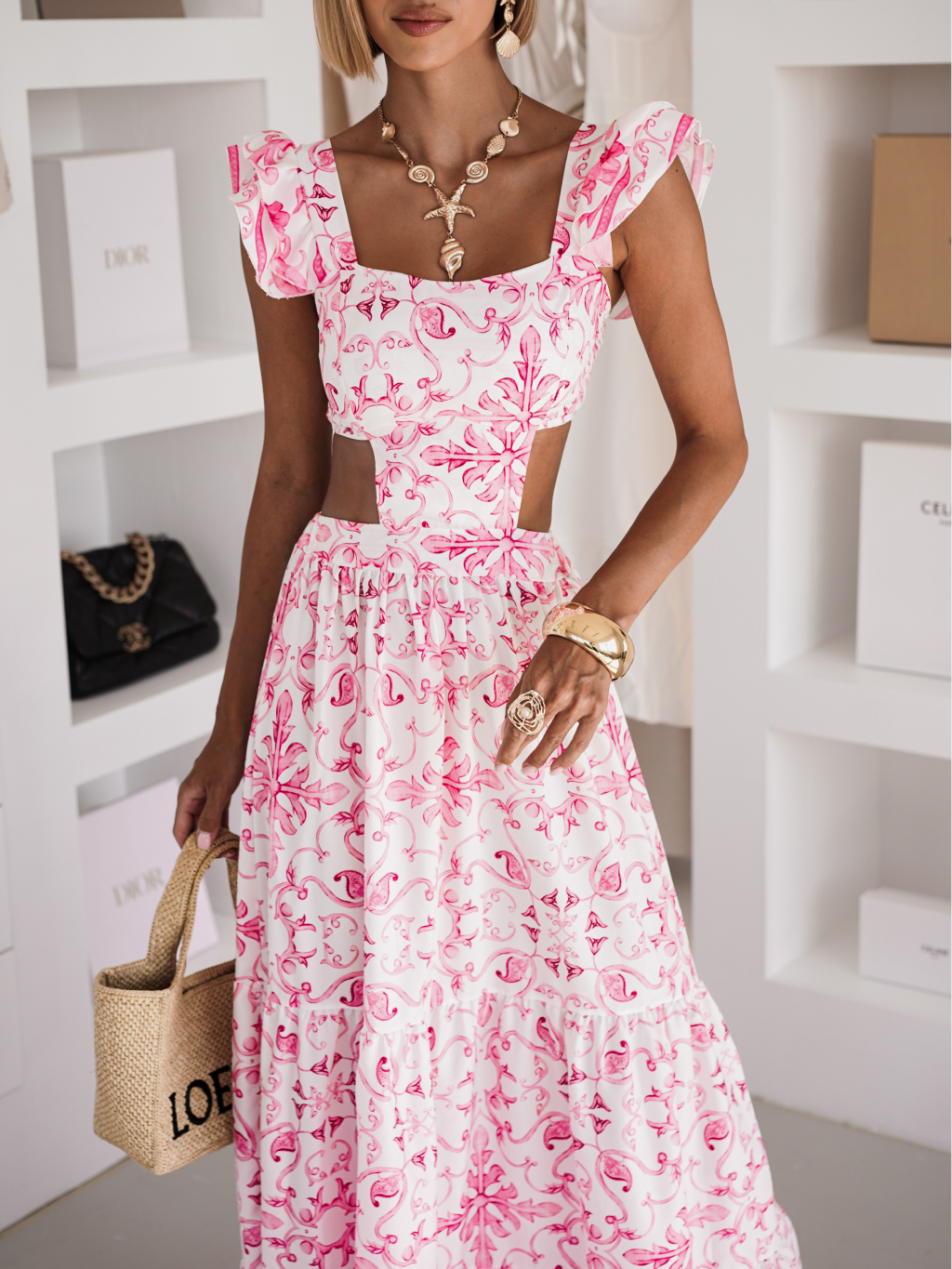 Rochia POSITANO imbina eleganta cu accente boho intr-un design spectaculos, perfect pentru tinute de vacanta sau evenimente estivale. Este realizata din material stabil cu imprimeu decorativ si decupaje laterale ce contureaza frumos talia.