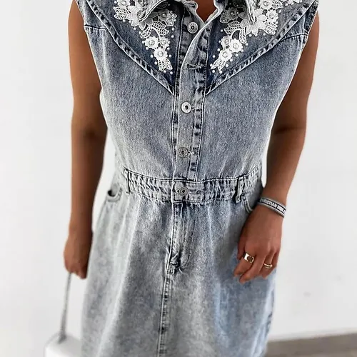 Rochie Sarafan Blugi - Denim - cu Dantela